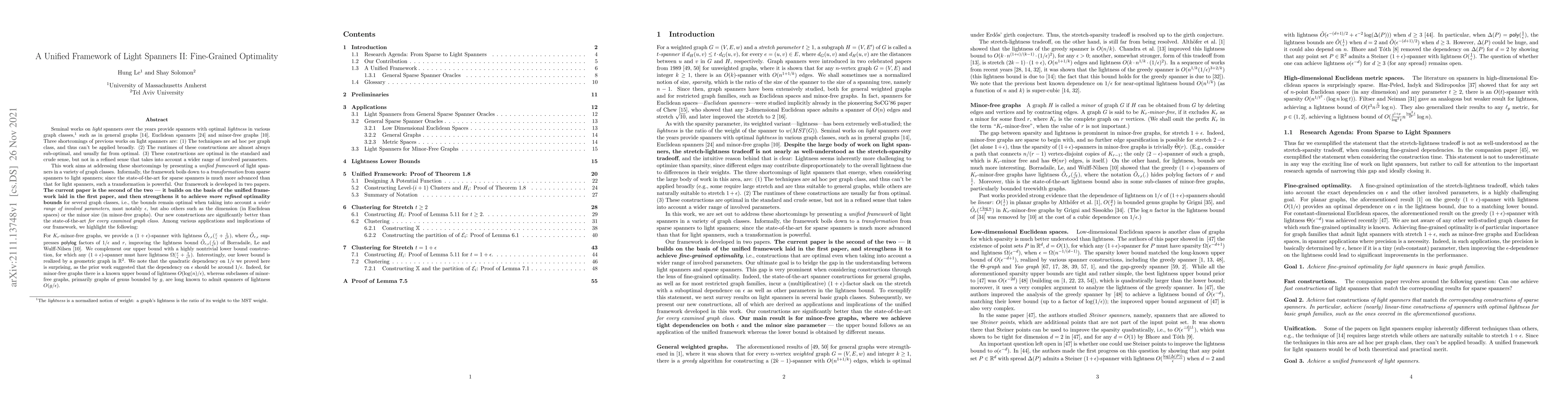 Seminal works on light spanners over the years provide spanners with optimal lightness in various graph classes, such as in general graphs, Euclidean spanners, and minor-free graphs. Three shortcomings of previous works on light spanners are: (1) The techniques are ad hoc per graph class, and thus can't be applied broadly. (2) The runtimes of these constructions are almost always sub-optimal, and usually far from optimal. (3) These constructions are optimal in the standard and crude sense, but not in a refined sense that takes into account a wider range of involved parameters. This work aims at addressing these shortcomings by presenting a unified framework of light spanners in a variety of graph classes. Informally, the framework boils down to a transformation from sparse spanners to light spanners; since the state-of-the-art for sparse spanners is much more advanced than that for light spanners, such a transformation is powerful. Our framework is developed in two papers. The current paper is the second of the two -- it builds on the basis of the unified framework laid in the first paper, and then strengthens it to achieve more refined optimality bounds for several graph classes. Among various applications and implications of our framework, we highlight here the following: For $K_r$-minor-free graphs, we provide a $(1+\epsilon)$-spanner with lightness $\tilde{O}_{r,\epsilon}( \frac{r}{\epsilon} + \frac{1}{\epsilon^2})$, improving the lightness bound $\tilde{O}_{r,\epsilon}( \frac{r}{\epsilon^3})$ of Borradaile, Le and Wulff-Nilsen. We complement our upper bound with a lower bound construction, for which any $(1+\epsilon)$-spanner must have lightness $\Omega(\frac{r}{\epsilon} + \frac{1}{\epsilon^2})$. We note that the quadratic dependency on $1/\epsilon$ we proved here is surprising, as the prior work suggested that the dependency on $\epsilon$ should be $1/\epsilon$.
