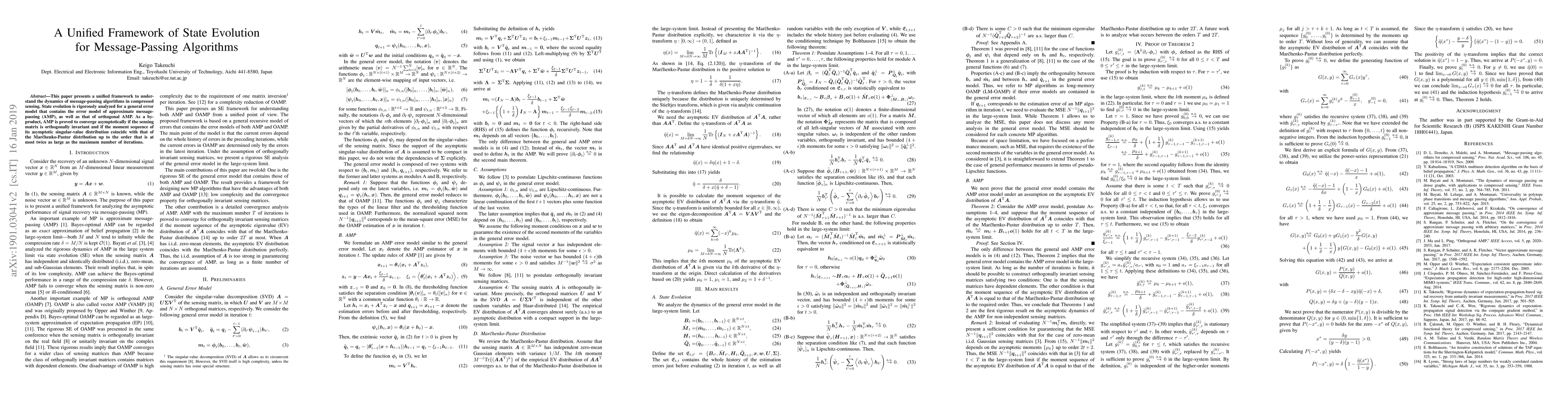 This paper introduces a unified framework to analyze state evolution in message-passing algorithms for compressed sensing, showing that AMP converges asymptotically under certain conditions. It provides new insights into the dynamics of these algorithms and their convergence behavior.