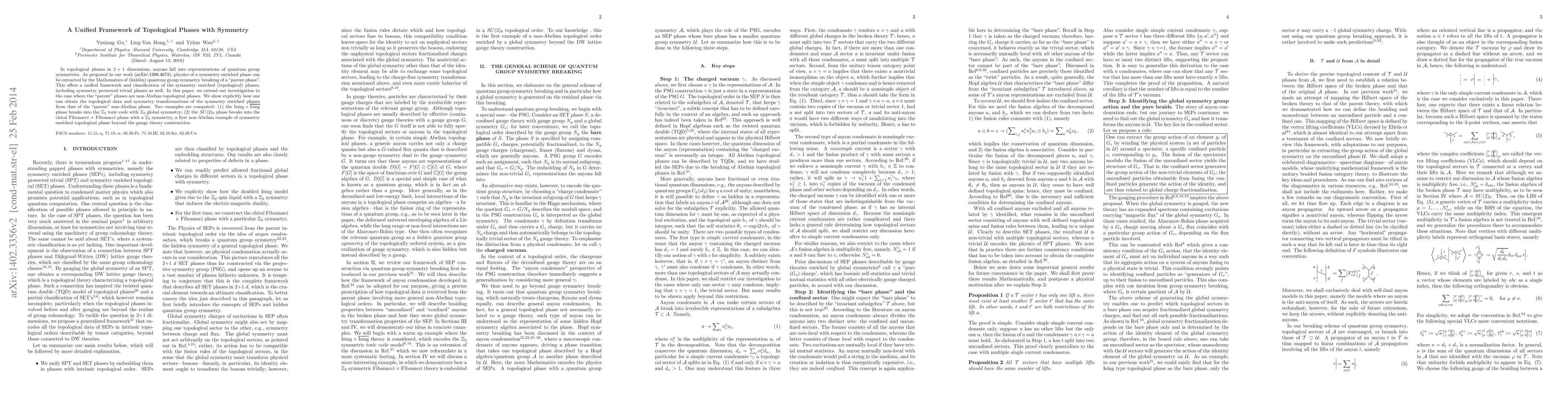 Researchers developed a unified framework to analyze topological phases with symmetry, extending their previous work on parent phases in 2+1 dimensions. This new framework allows for the classification of symmetry-enriched phases beyond traditional gauge theory constructions.