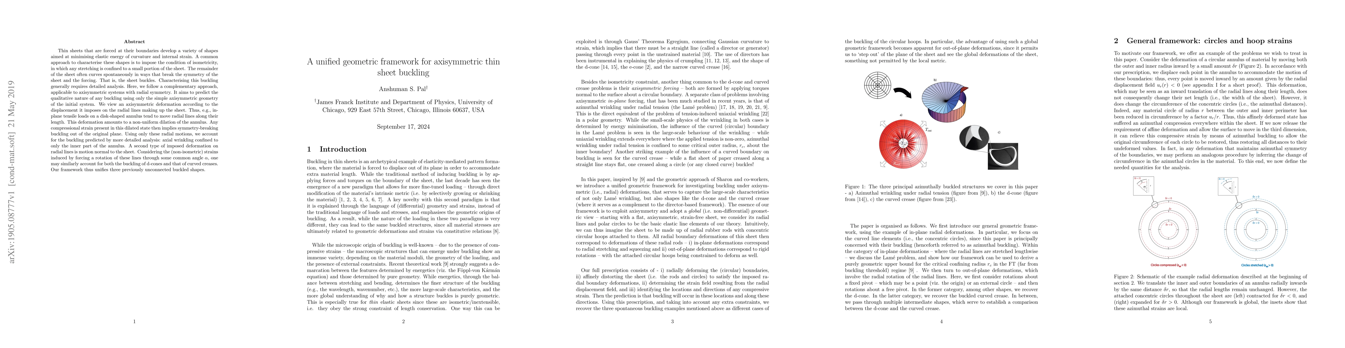 This paper introduces a unified geometric framework for axisymmetric thin sheet buckling, enabling the prediction of three previously unconnected buckled shapes with simple analysis.