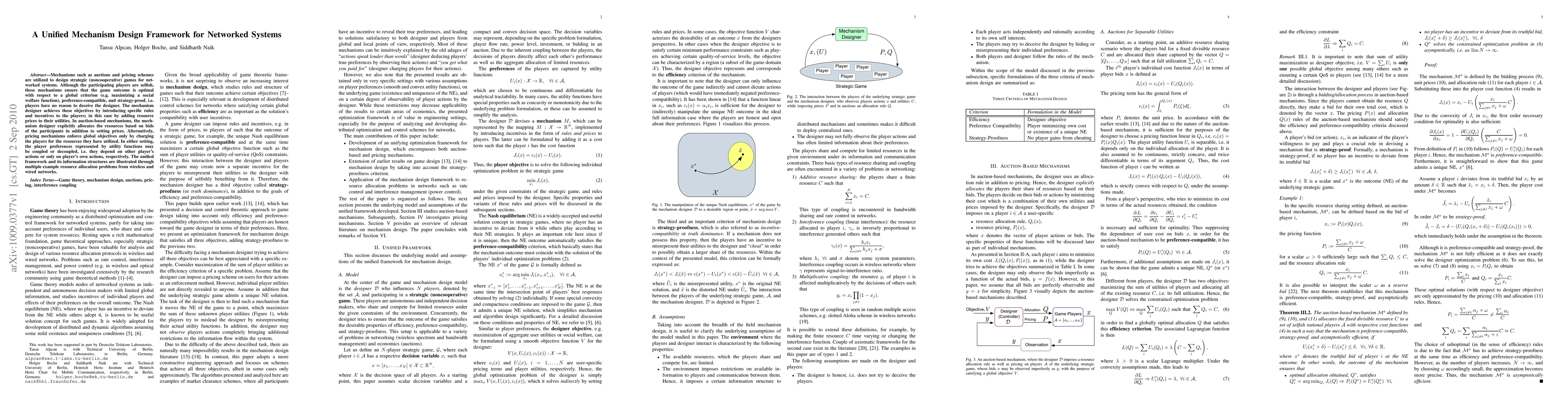 A unified framework for designing mechanisms in networked systems ensures optimal outcomes while respecting player preferences and strategy-proofness. The framework provides a general approach to resource allocation problems in wireless and wired networks.