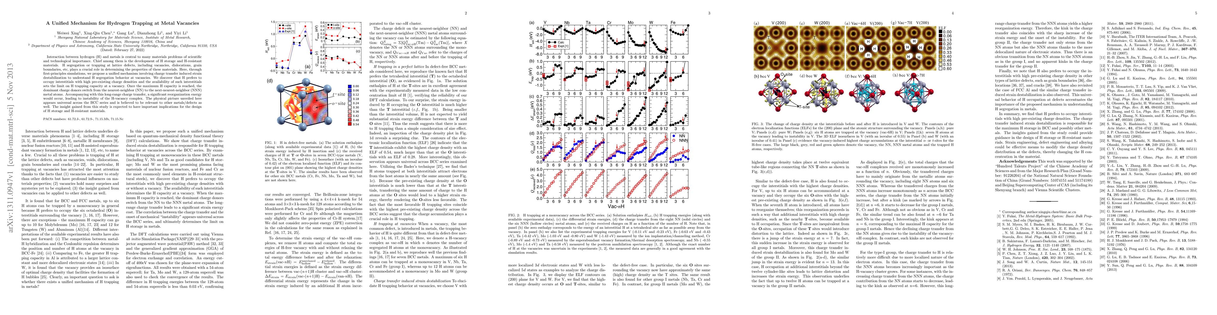Interaction between hydrogen (H) and metals is central to many materials problems of scientific and technological importance. Chief among them is the development of H storage and H-resistant materials. H segregation or trapping at lattice defects, including vacancies, dislocations, grain boundaries, etc, plays a crucial role in determining the properties of these materials. Here, through first-principles simulations, we propose a unified mechanism involving charge transfer induced strain destabilization to understand H segregation behavior at vacancies. We discover that H prefers to occupy interstitials with high pre-existing charge densities and the availability of such interstitials sets the limit on H trapping capacity at a vacancy. Once the maximum H capacity is reached, the dominant charge donors switch from the nearest-neighbor (NN) to the next-nearest-neighbor (NNN) metal atoms. Accompanying with this long-range charge transfer, a significant reorganization energy would occur, leading to instability of the H-vacancy complex. The physical picture unveiled here appears universal across the BCC series and is believed to be relevant to other metals/defects as well. The insight gained from this study is expected to have important implications for the design of H storage and H-resistant materials.