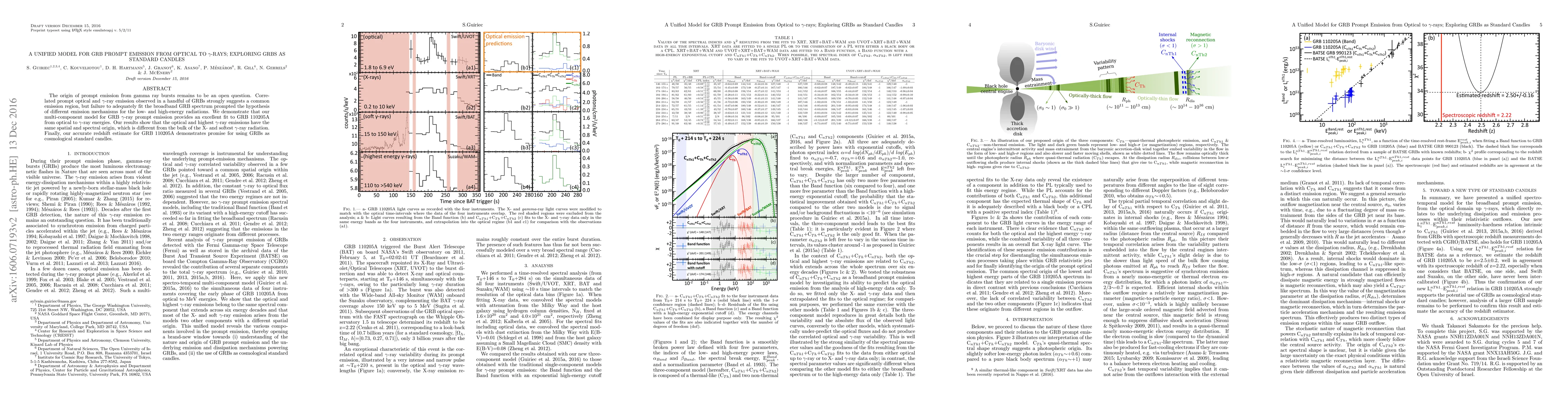 This paper presents a unified model for gamma-ray burst (GRB) prompt emission that fits the broadband spectrum of GRB 110205A from optical to gamma-ray energies, suggesting a common origin for optical and high-energy gamma rays. The findings support the potential use of GRBs as cosmological standard candles.