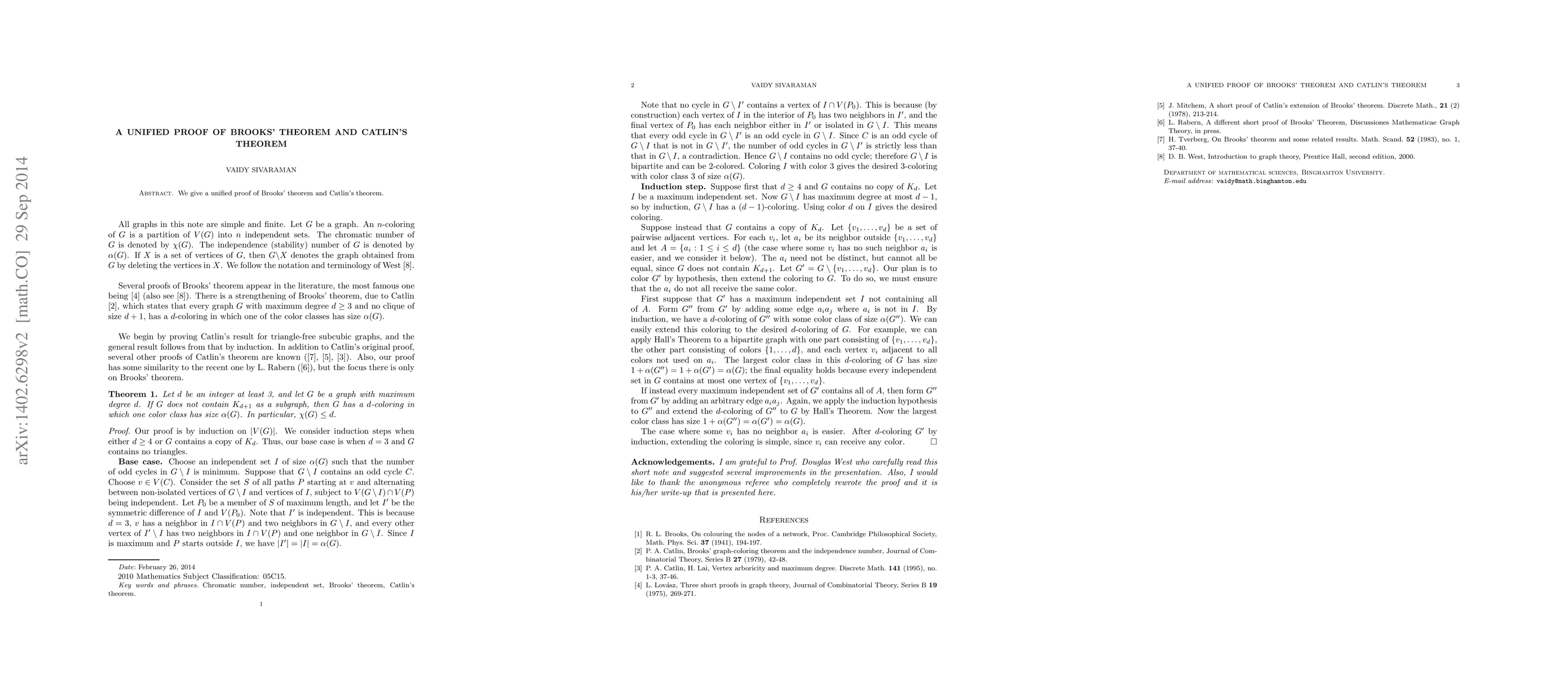 Summary: This paper presents a novel proof of Brooks' theorem, which also leads to a strengthened version known as Catlin's theorem, offering a unified approach to both results.