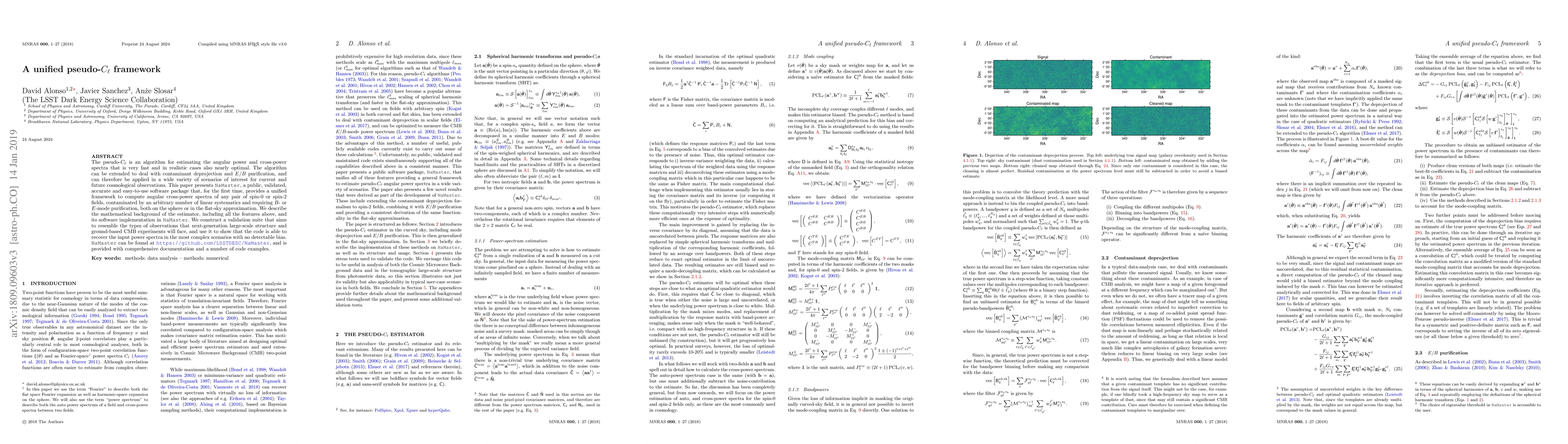 This paper introduces NaMaster, a unified pseudo-$C_\ell$ framework software for computing angular power and cross-power spectra, capable of handling various contaminants and $E/B$ purification, validated against complex observational scenarios for future cosmological experiments. The software is publicly available with comprehensive documentation.