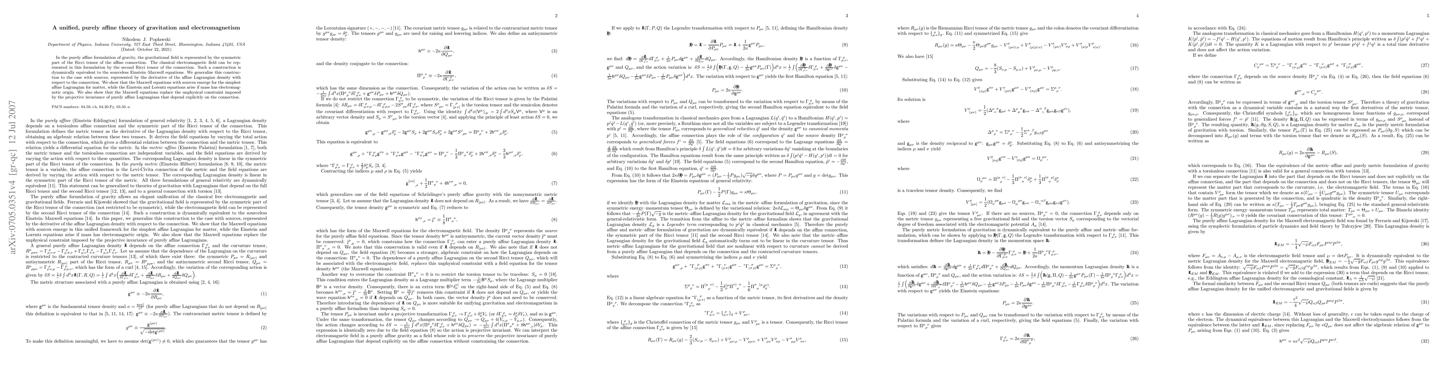 This paper presents a unified affine theory of gravitation and electromagnetism, showing that both fields can be represented using the symmetric and second Ricci tensors of the affine connection. It generalizes the theory to include sources, demonstrating that the Maxwell equations emerge naturally from the affine Lagrangian for matter.