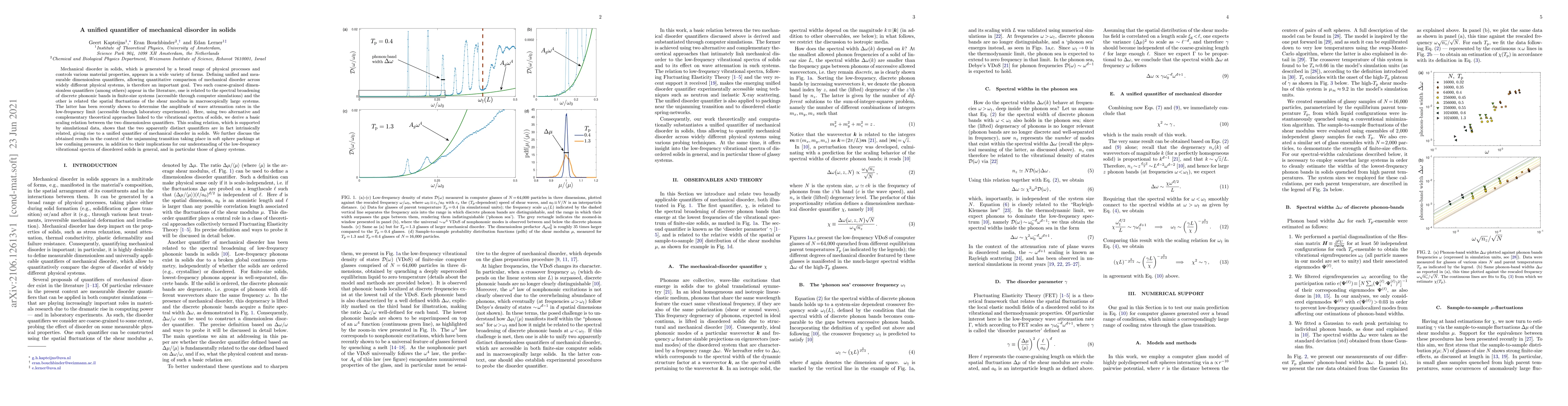 This paper proposes a unified quantifier for mechanical disorder in solids by deriving a scaling relation between two existing dimensionless measures: one from spectral broadening in simulations and the other from shear modulus fluctuations in experiments. The findings suggest a deeper intrinsic connection between these measures, providing a comprehensive view of mechanical disorder and implications for disordered systems like glasses.