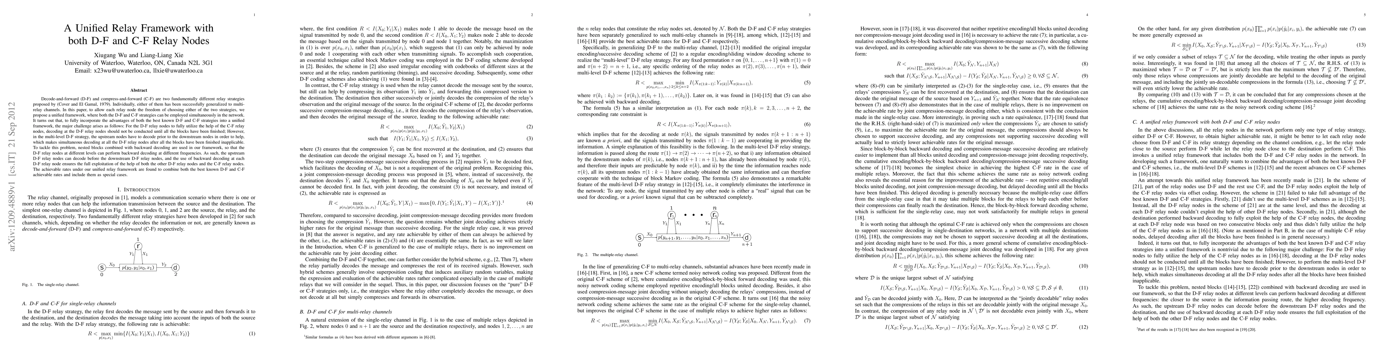 Decode-and-forward (D-F) and compress-and-forward (C-F) are two fundamentally different relay strategies proposed by (Cover and El Gamal, 1979). Individually, either of them has been successfully generalized to multi-relay channels. In this paper, to allow each relay node the freedom of choosing either of the two strategies, we propose a unified framework, where both the D-F and C-F strategies can be employed simultaneously in the network. It turns out that, to fully incorporate the advantages of both the best known D-F and C-F strategies into a unified framework, the major challenge arises as follows: For the D-F relay nodes to fully utilize the help of the C-F relay nodes, decoding at the D-F relay nodes should not be conducted until all the blocks have been finished; However, in the multi-level D-F strategy, the upstream nodes have to decode prior to the downstream nodes in order to help, which makes simultaneous decoding at all the D-F relay nodes after all the blocks have been finished inapplicable. To tackle this problem, nested blocks combined with backward decoding are used in our framework, so that the D-F relay nodes at different levels can perform backward decoding at different frequencies. As such, the upstream D-F relay nodes can decode before the downstream D-F relay nodes, and the use of backward decoding at each D-F relay node ensures the full exploitation of the help of both the other D-F relay nodes and the C-F relay nodes. The achievable rates under our unified relay framework are found to combine both the best known D-F and C-F achievable rates and include them as special cases.