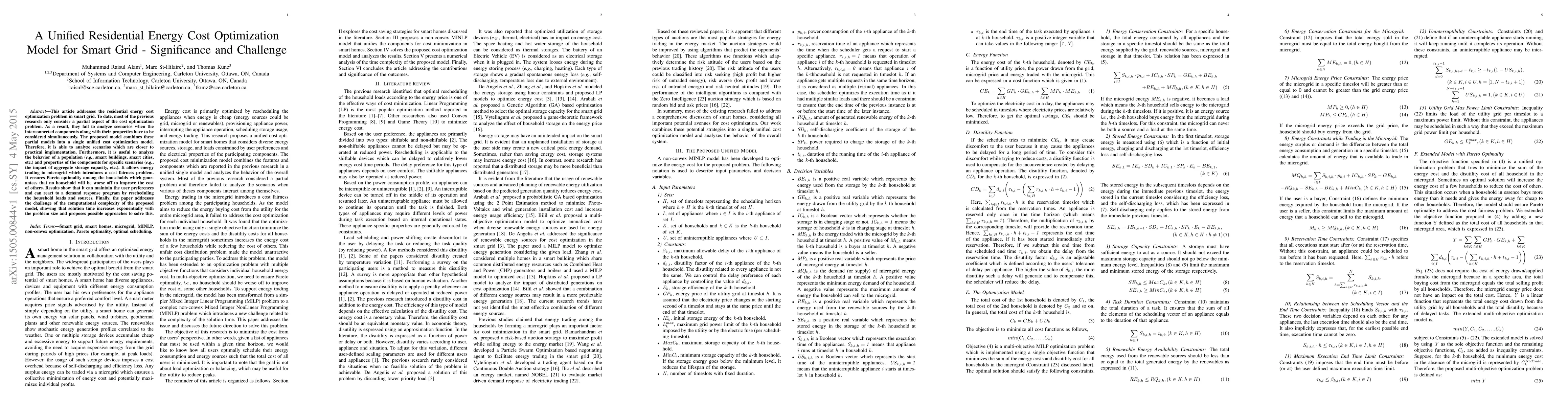 This research paper proposes a unified model for optimizing residential energy costs in smart grids, addressing challenges such as computational complexity and ensuring cost fairness among households.