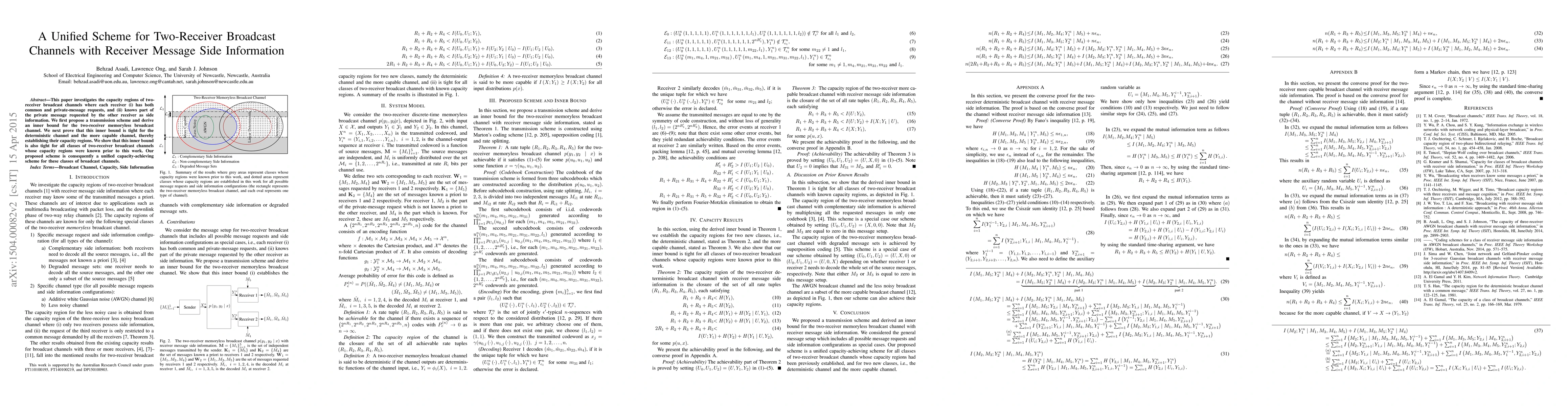 This paper proposes a transmission scheme for two-receiver broadcast channels with side information and derives an inner bound for the channel's capacity region. The proposed scheme is shown to be capacity-achieving for various known channel classes, establishing a unified capacity-achieving approach.