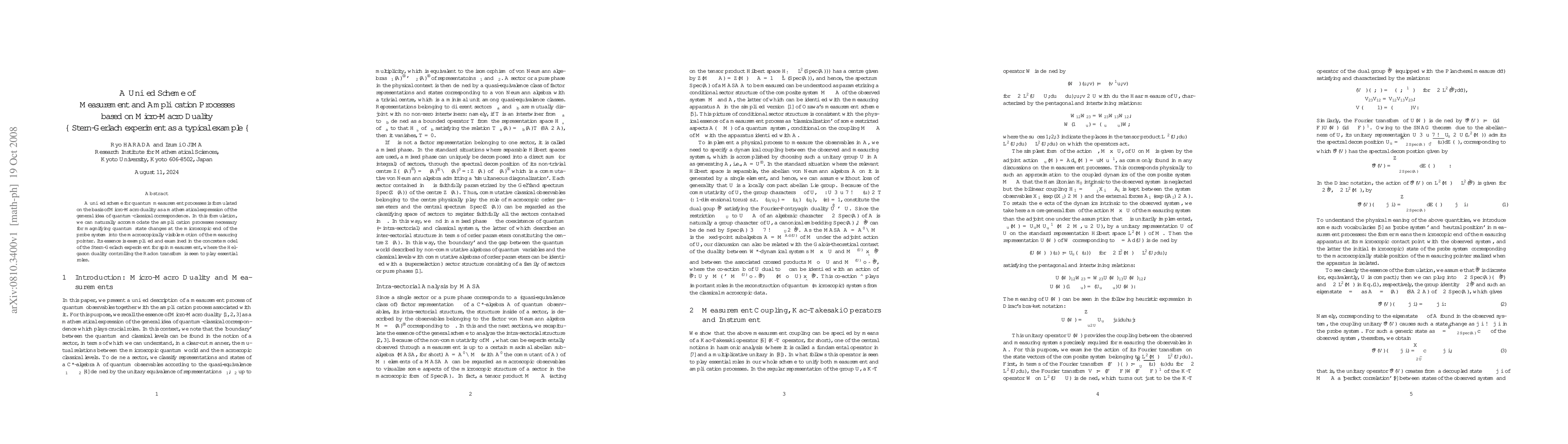 A unified scheme for quantum measurement processes is formulated on the basis of Micro-Macro duality as a mathematical expression of the general idea of quantum-classical correspondence. In this formulation, we can naturally accommodate the amplification processes necessary for magnifying quantum state changes at the microscopic end of the probe system into the macroscopically visible motion of the measuring pointer. Its essence is exemplified and examined in the concrete model of the Stern-Gerlach experiment for spin measurement, where the Helgason duality controlling the Radon transform is seen to play essential roles.