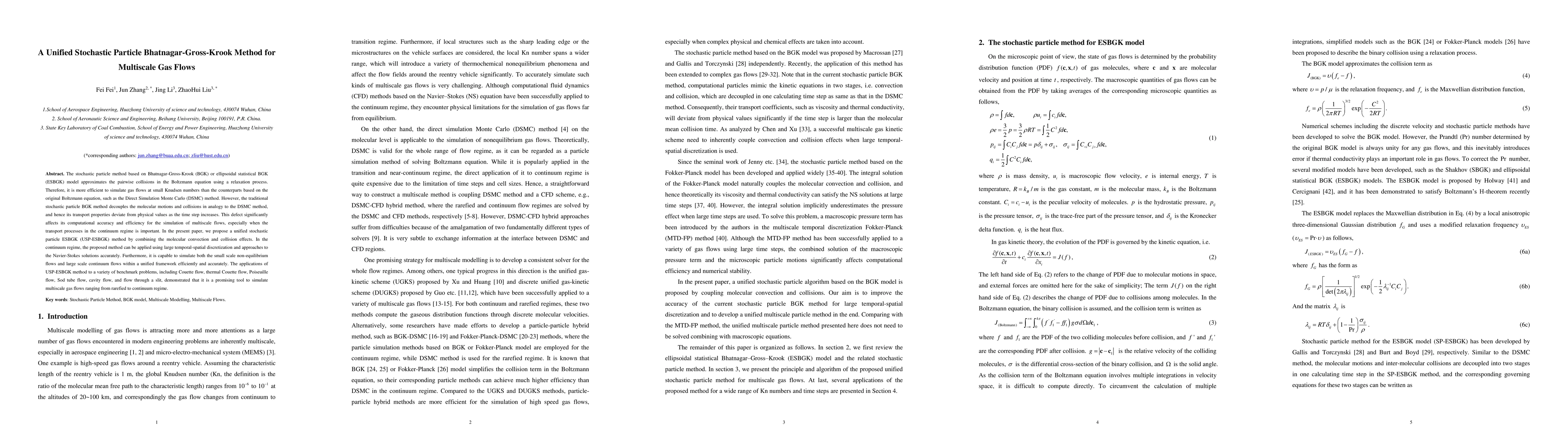 This paper proposes a unified stochastic particle ESBGK (USP-ESBGK) method that combines molecular convection and collision effects to simulate multiscale gas flows efficiently. The method accurately approaches Navier-Stokes solutions in the continuum regime and effectively handles both small-scale non-equilibrium and large-scale continuum flows within a single framework.