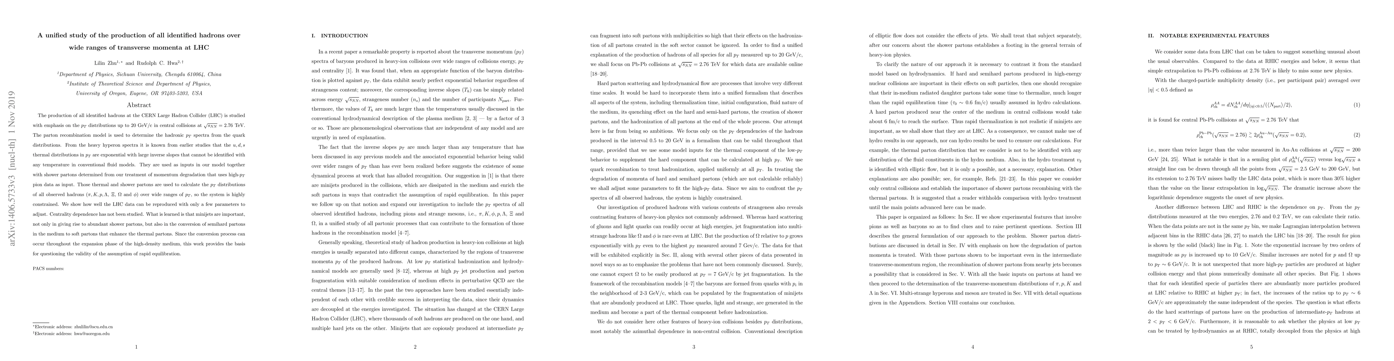 The production of all identified hadrons at the CERN Large Hadron Collider (LHC) is studied with emphasis on the $p_T$ distributions up to 20 GeV/c in central collisions at $\sqrt{s_{NN}}=2.76$ TeV. The parton recombination model is used to determine the hadronic \ppt\ spectra from the quark \dis s. From the heavy hyperon spectra it is known from earlier studies that the $u, d, s$ thermal \dis s in \ppt\ are exponential with large inverse slopes that cannot be identified with any temperature in conventional fluid models. They are used as inputs in our model together with shower partons determined from our treatment of momentum degradation that uses high-\ppt\ pion data as input. Those thermal and shower partons are used to calculate the $p_T$ \dis s of all observed hadrons ($\pi, K, p, \Lambda$, $\Xi$, $\Omega$ and $\phi$) over wide ranges of \ppt, so the system is highly constrained. We show how well the LHC data can be reproduced with only a few parameters to adjust. Centrality dependence has not been studied. What is learned is that minijets are important, not only in giving rise to abundant shower partons, but also in the conversion of semihard partons in the medium to soft partons that enhance the thermal partons. Since the conversion process can occur throughout the expansion phase of the high-density medium, this work provides the basis for questioning the validity of the assumption of rapid equilibration.