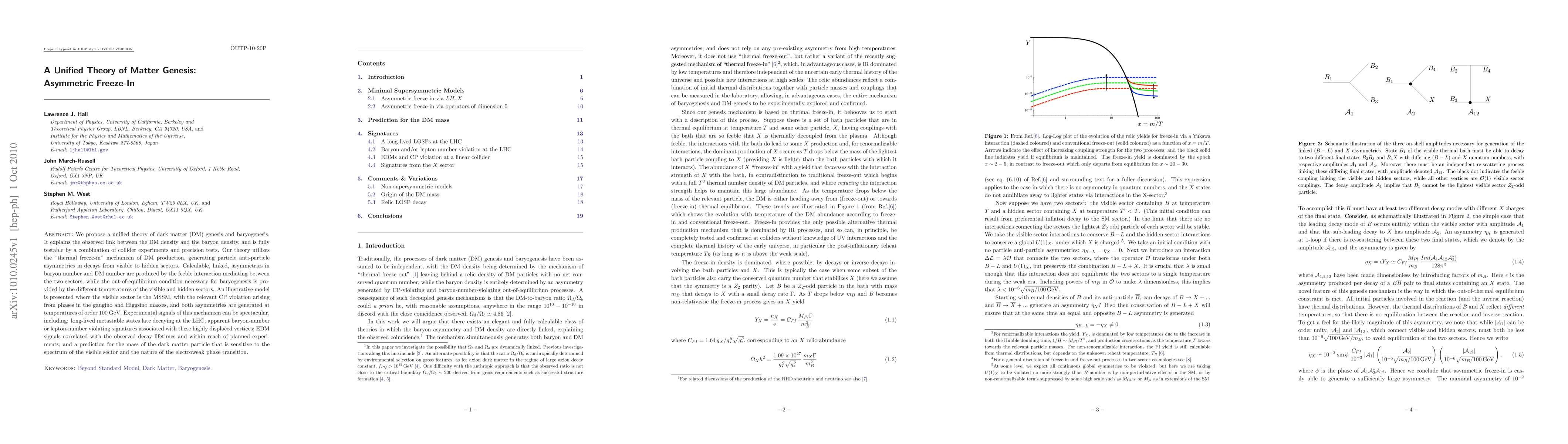 Researchers propose a unified theory of dark matter genesis that links dark matter density to baryon density, testable through collider experiments and precision tests. The theory predicts spectacular experimental signals, including long-lived metastable states and electron dipole moment signals.