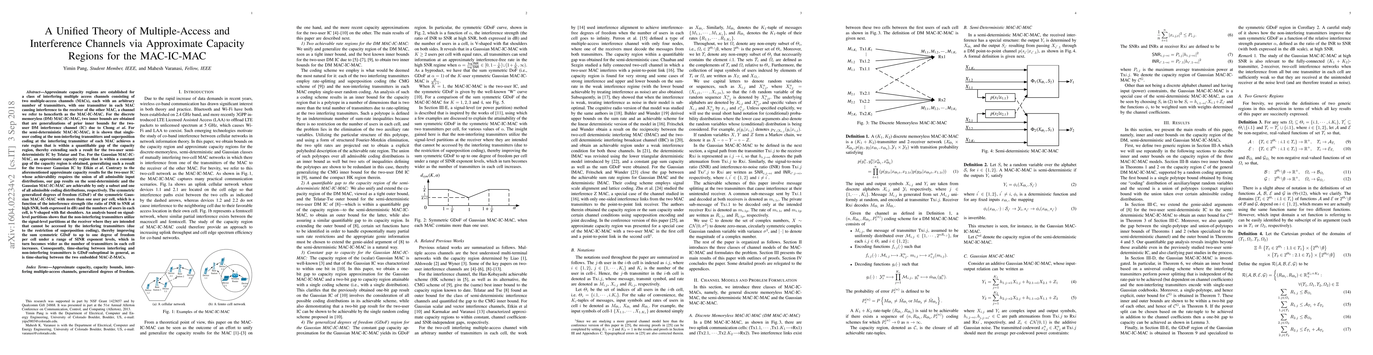 This paper establishes approximate capacity regions for a MAC-IC-MAC channel, generalizing prior results for the two-user interference channel. It shows that single-user and superposition coding can achieve near-optimal rates for semi-deterministic and Gaussian MAC-IC-MACs, with a quantifiable gap. The symmetric generalized degrees of freedom for the Gaussian MAC-IC-MAC is V-shaped with flat shoulders.