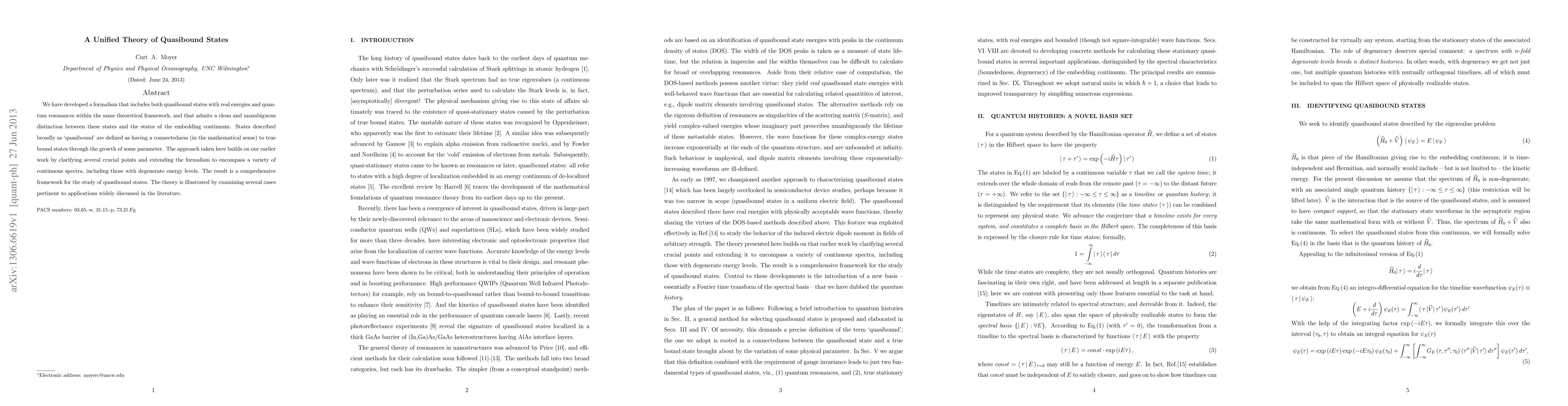 This paper presents a unified theoretical framework for quasibound states and quantum resonances, distinguishing them from the embedding continuum. It extends previous work to cover various continuous spectra and degenerate energy levels, providing a comprehensive approach for studying these states.