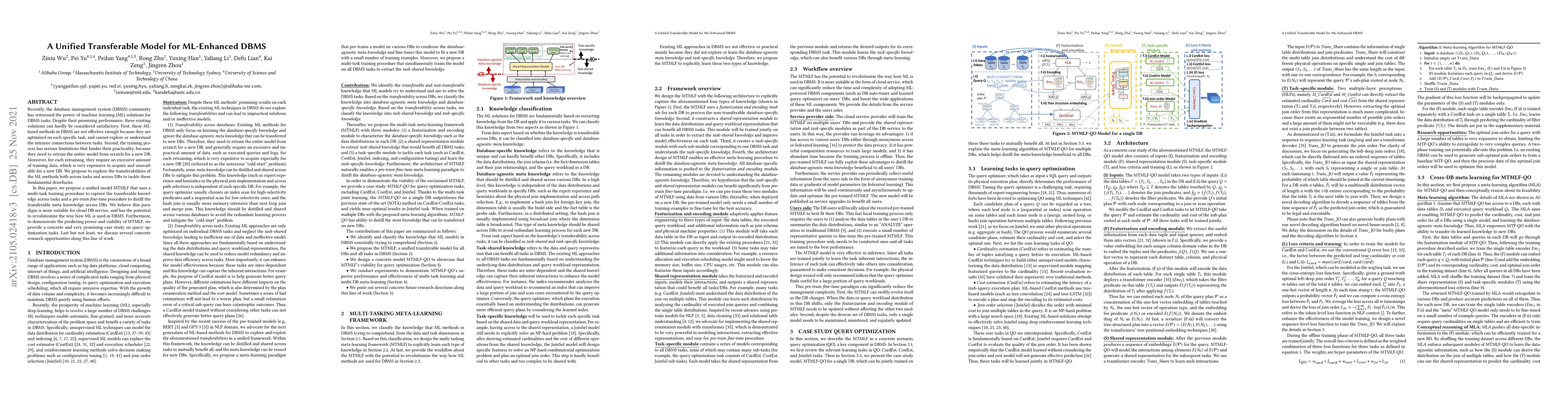 Recently, the database management system (DBMS) community has witnessed the power of machine learning (ML) solutions for DBMS tasks. Despite their promising performance, these existing solutions can hardly be considered satisfactory. First, these ML-based methods in DBMS are not effective enough because they are optimized on each specific task, and cannot explore or understand the intrinsic connections between tasks. Second, the training process has serious limitations that hinder their practicality, because they need to retrain the entire model from scratch for a new DB. Moreover, for each retraining, they require an excessive amount of training data, which is very expensive to acquire and unavailable for a new DB. We propose to explore the transferabilities of the ML methods both across tasks and across DBs to tackle these fundamental drawbacks. In this paper, we propose a unified model MTMLF that uses a multi-task training procedure to capture the transferable knowledge across tasks and a pre-train fine-tune procedure to distill the transferable meta knowledge across DBs. We believe this paradigm is more suitable for cloud DB service, and has the potential to revolutionize the way how ML is used in DBMS. Furthermore, to demonstrate the predicting power and viability of MTMLF, we provide a concrete and very promising case study on query optimization tasks. Last but not least, we discuss several concrete research opportunities along this line of work.