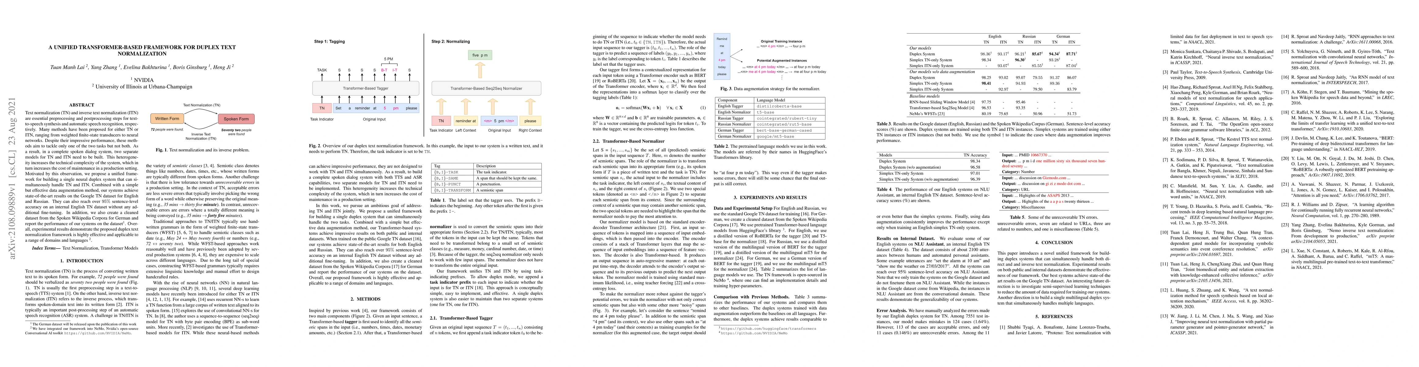 This paper proposes a unified transformer-based framework for both text normalization and inverse text normalization, achieving state-of-the-art results on multiple datasets and reducing the complexity of spoken dialog systems. The framework also demonstrates high accuracy on internal datasets without additional fine-tuning.