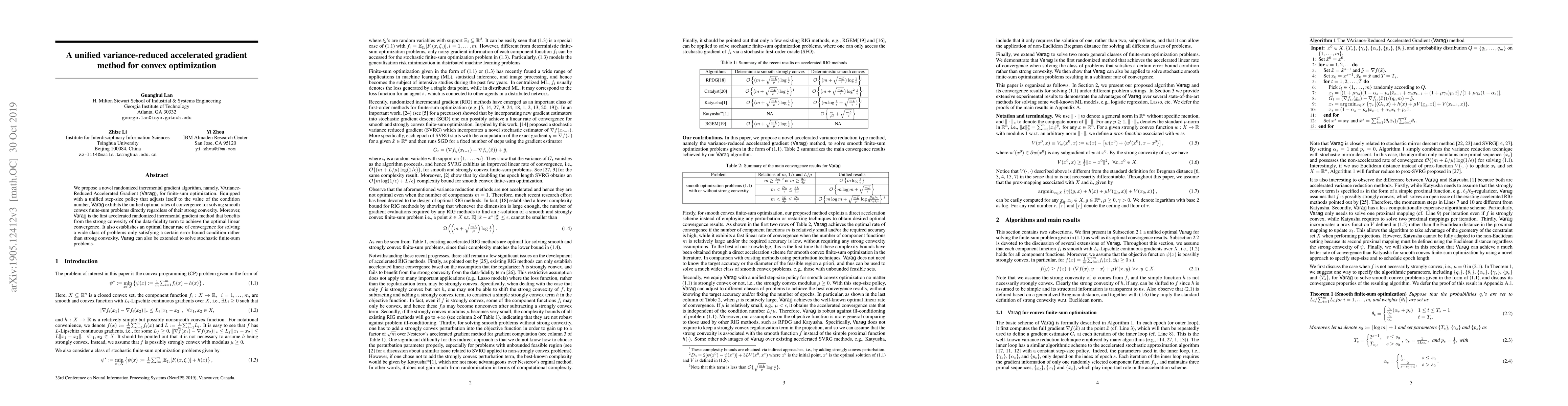 The paper introduces Varag, a novel variance-reduced accelerated gradient method for convex optimization, which offers optimal convergence rates for smooth convex finite-sum problems regardless of strong convexity and extends to stochastic optimization. Varag achieves linear convergence by leveraging the data-fidelity term's strong convexity.