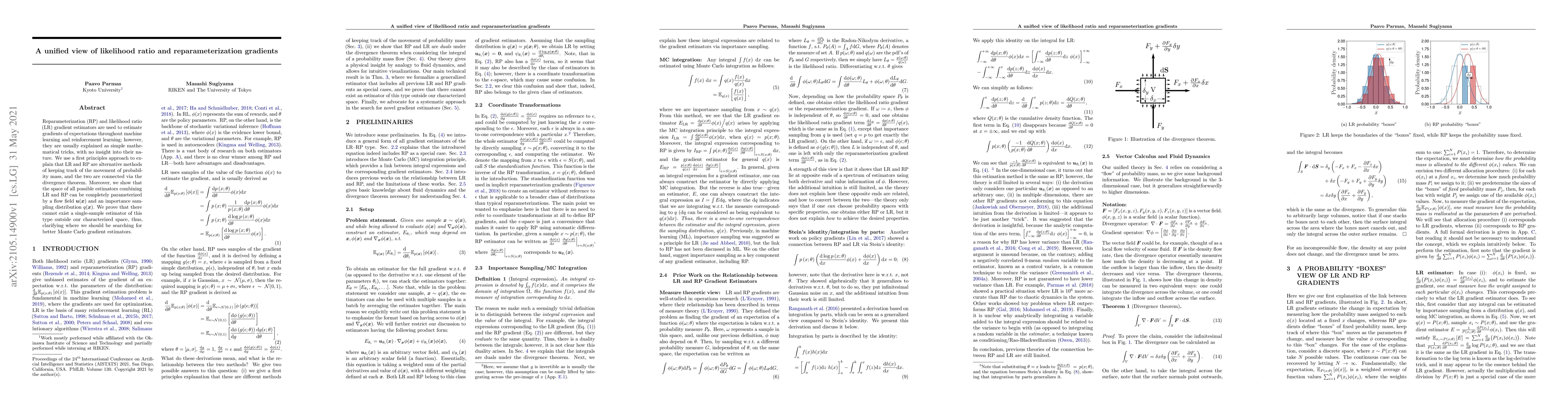 Reparameterization (RP) and likelihood ratio (LR) gradient estimators are used to estimate gradients of expectations throughout machine learning and reinforcement learning; however, they are usually explained as simple mathematical tricks, with no insight into their nature. We use a first principles approach to explain that LR and RP are alternative methods of keeping track of the movement of probability mass, and the two are connected via the divergence theorem. Moreover, we show that the space of all possible estimators combining LR and RP can be completely parameterized by a flow field $u(x)$ and an importance sampling distribution $q(x)$. We prove that there cannot exist a single-sample estimator of this type outside our characterized space, thus, clarifying where we should be searching for better Monte Carlo gradient estimators.