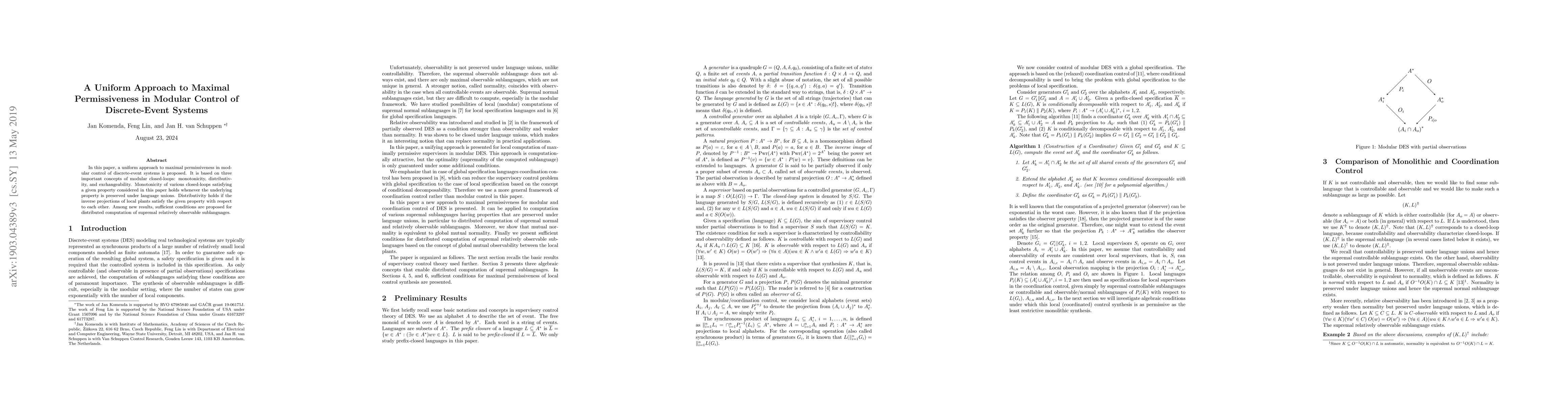 In this paper, a uniform approach to maximal permissiveness in modular control of discrete-event systems is proposed. It is based on three important concepts of modular closed-loops: monotonicity, distributivity, and exchangeability. Monotonicity of various closed-loops satisfying a given property considered in this paper holds whenever the underlying property is preserved under language unions. Distributivity holds if the inverse projections of local plants satisfy the given property with respect to each other. Among new results, sufficient conditions are proposed for distributed computation of supremal relatively observable sublanguages.