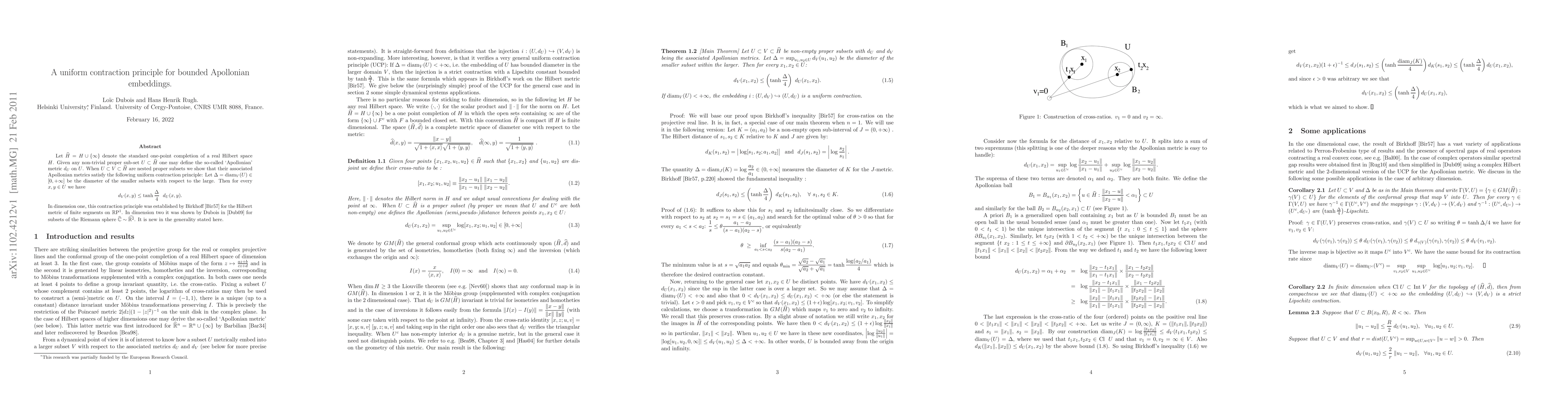 Let H denote the standard one-point completion of a real Hilbert space. Given any non-trivial proper sub-set U of H one may define the so-called `Apollonian' metric d_U on U. When U \subset V \subset H are nested proper subsets we show that their associated Apollonian metrics satisfy the following uniform contraction principle: Let D=diam_V (U) \in [0,+\infty] be the diameter of the smaller subsets with respect to the large. Then for every x,y in U we have d_V(x,y) \leq tanh (D/4) d_U(x,y). In dimension one, this contraction principle was established by Birkhoff for the Hilbert metric of finite segments on RP^1. In dimension two it was shown by Dubois for subsets of the Riemann sphere. It is new in the generality stated here.