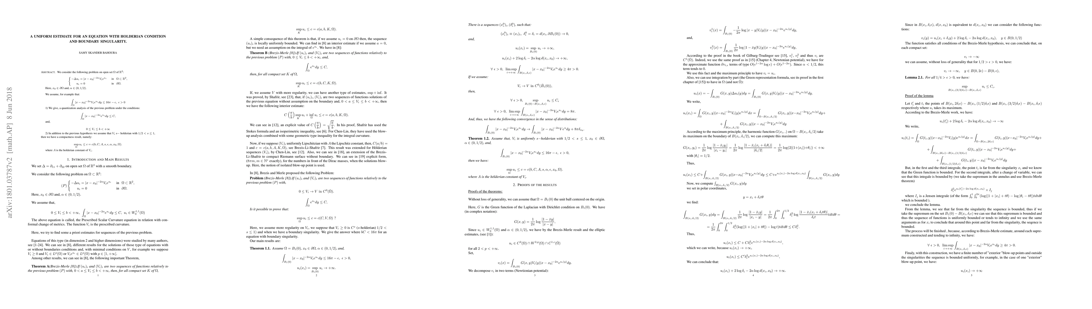 Summary: This paper presents a blow-up analysis and establishes a compactness result for an equation featuring a Hölderian condition and a boundary singularity, providing uniform estimates for the solution.