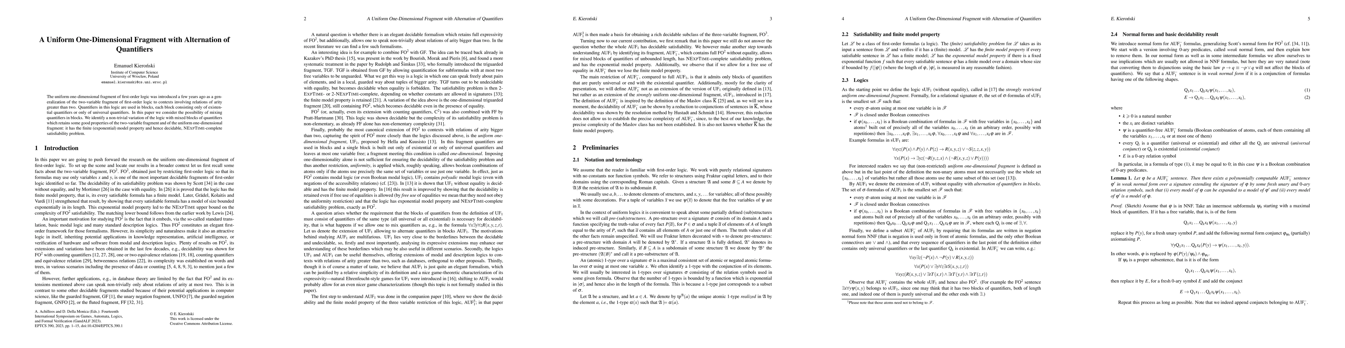 This paper explores a variation of the uniform one-dimensional fragment of first-order logic that alternates between blocks of existential and universal quantifiers. This mixed-quantifier logic retains desirable properties, including the finite model property, leading to a decidable NExpTime-complete satisfiability problem.