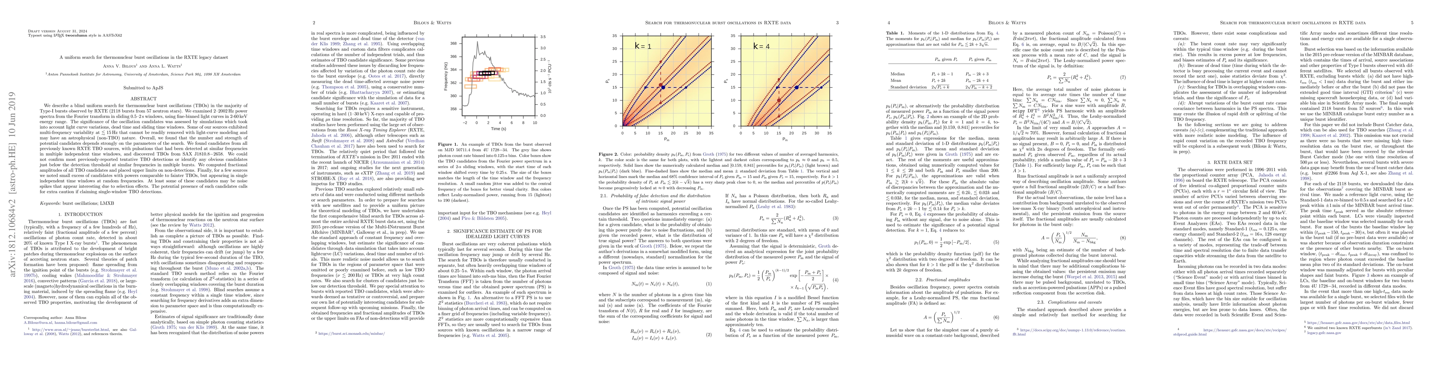 We describe a blind uniform search for thermonuclear burst oscillations (TBOs) in the majority of Type-I bursts observed by RXTE (2118 bursts from 57 neutron stars). We examined 2-2002 Hz power spectra from the Fourier transform in sliding 0.5-2 s windows, using fine-binned light curves in 2-60 keV energy range. The significance of the oscillation candidates was assessed by simulations which took into account light curve variations, dead time and sliding time windows. Some of our sources exhibited multi-frequency variability below approximately 15 Hz that cannot be readily removed with light-curve modeling and may have an astrophysical (non-TBO) nature. Overall, we found that the number and strength of potential candidates depends strongly on the parameters of the search. We found candidates from all previously known RXTE TBO sources, with pulsations that had been detected at similar frequencies in multiple independent time windows, and discovered TBOs from SAX J1810.8-2658. We could not confirm most previously-reported tentative TBO detections or identify any obvious candidates just below the detection threshold at similar frequencies in multiple bursts. We computed fractional amplitudes of all TBO candidates and placed upper limits on non-detections. Finally, for a few sources we noted small excess of candidates with powers comparable to fainter TBOs, but appearing in single independent time bins at random frequencies. At least some of these candidates may be noise spikes that appear interesting due to selection effects. The potential presence of such candidates calls for extra caution if claiming single-bin TBO detections.