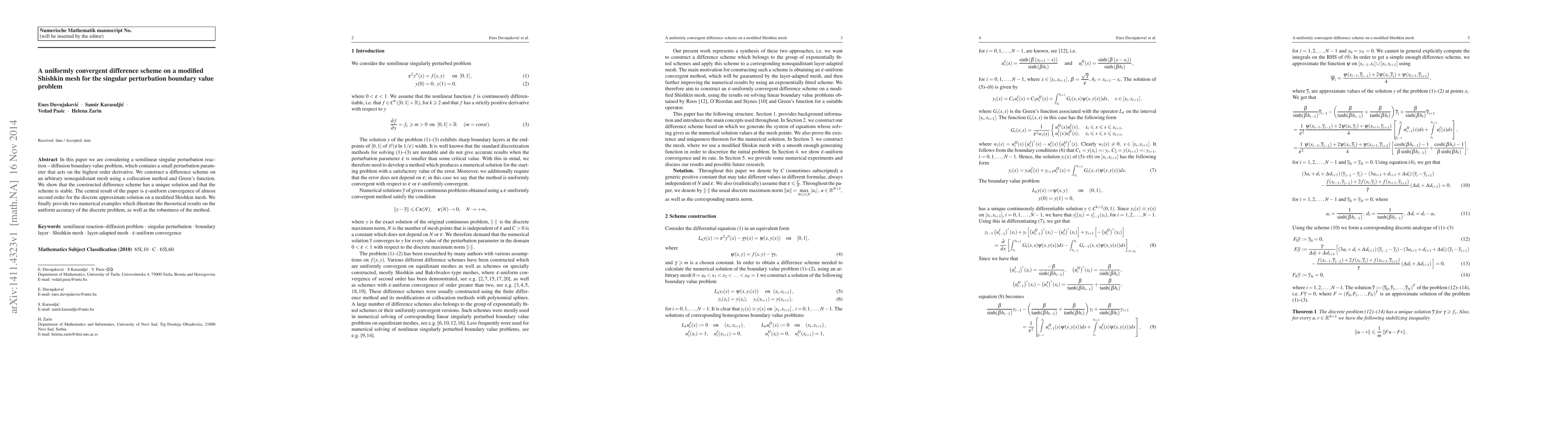 A new difference scheme is introduced for solving a semilinear singular perturbation reaction-diffusion boundary value problem, demonstrating $ extit{ extcolor{red}{ extbf{almost second-order}}}$ convergence on a modified Shishkin mesh.