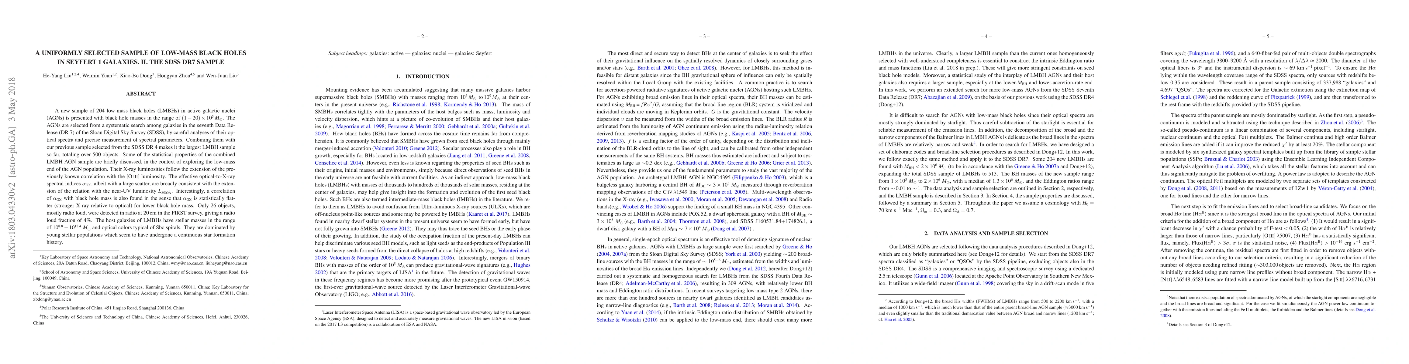 This paper presents a new sample of 204 low-mass black holes in AGNs from SDSS DR7, expanding the largest known LMBH sample to over 500 objects. The study finds correlations between X-ray and optical luminosities, with a notable trend of flatter \alpha_OX for lower black hole masses.