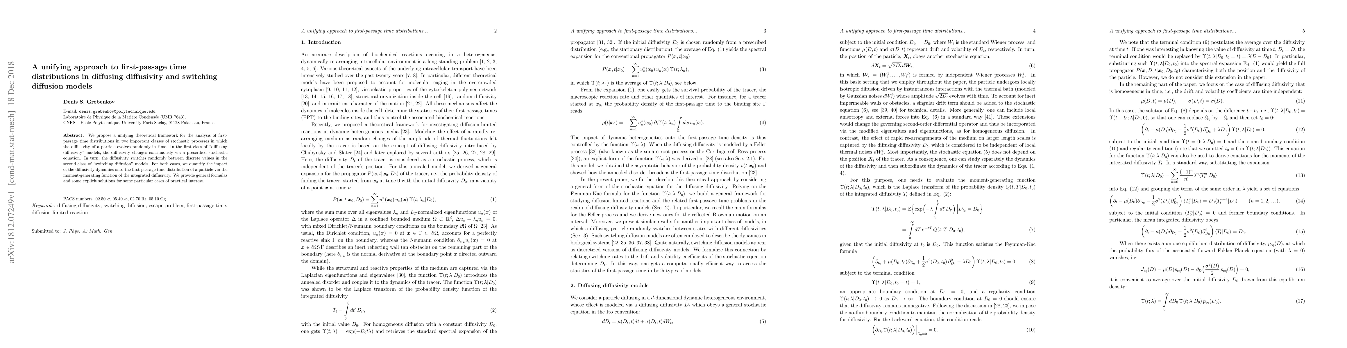 This paper introduces a unified theoretical framework to analyze first-passage time distributions in stochastic processes where particle diffusivity changes randomly over time. It provides general formulas and explicit solutions for both "diffusing diffusivity" and "switching diffusion" models, using the moment-generating function of integrated diffusivity to quantify the impact of diffusivity dynamics.