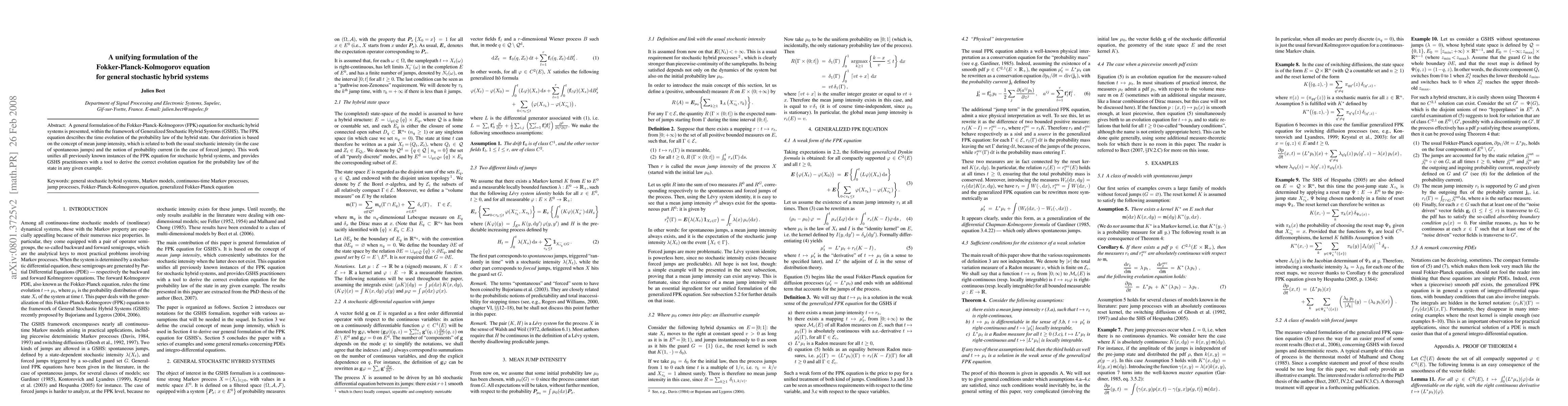 The paper presents a unified formulation of the Fokker-Planck-Kolmogorov equation for stochastic hybrid systems, providing a tool to derive the correct evolution equation for the probability law of any given state.