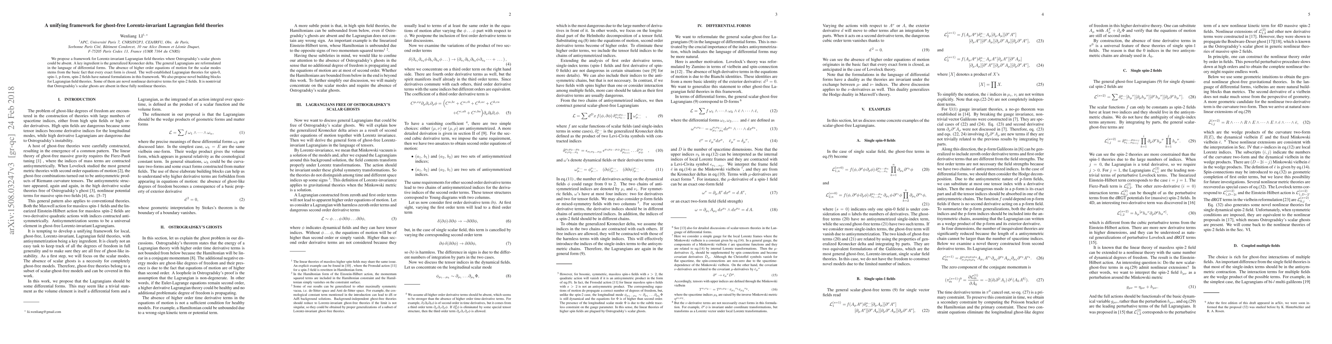 We propose a framework for Lorentz-invariant Lagrangian field theories where Ostrogradsky's scalar ghosts could be absent. A key ingredient is the generalized Kronecker delta. The general Lagrangians are reformulated in the language of differential forms. The absence of higher order equations of motion for the scalar modes stems from the basic fact that every exact form is closed. The well-established Lagrangian theories for spin-0, spin-1, p-form, spin-2 fields have natural formulations in this framework. We also propose novel building blocks for Lagrangian field theories. Some of them are novel nonlinear derivative terms for spin-2 fields. It is nontrivial that Ostrogradsky's scalar ghosts are absent in these fully nonlinear theories.