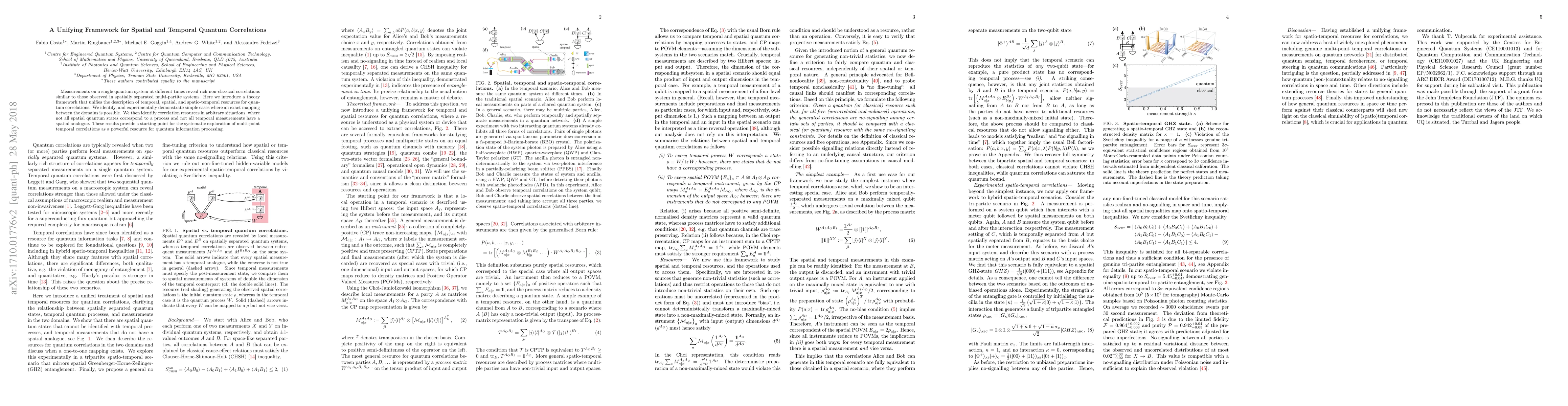 Measurements on a single quantum system at different times reveal rich non-classical correlations similar to those observed in spatially separated multi-partite systems. Here we introduce a theory framework that unifies the description of temporal, spatial, and spatio-temporal resources for quantum correlations. We identify, and experimentally demonstrate simple cases where an exact mapping between the domains is possible. We then identify correlation resources in arbitrary situations, where not all spatial quantum states correspond to a process and not all temporal measurements have a spatial analogue. These results provide a starting point for the systematic exploration of multi-point temporal correlations as a powerful resource for quantum information processing.