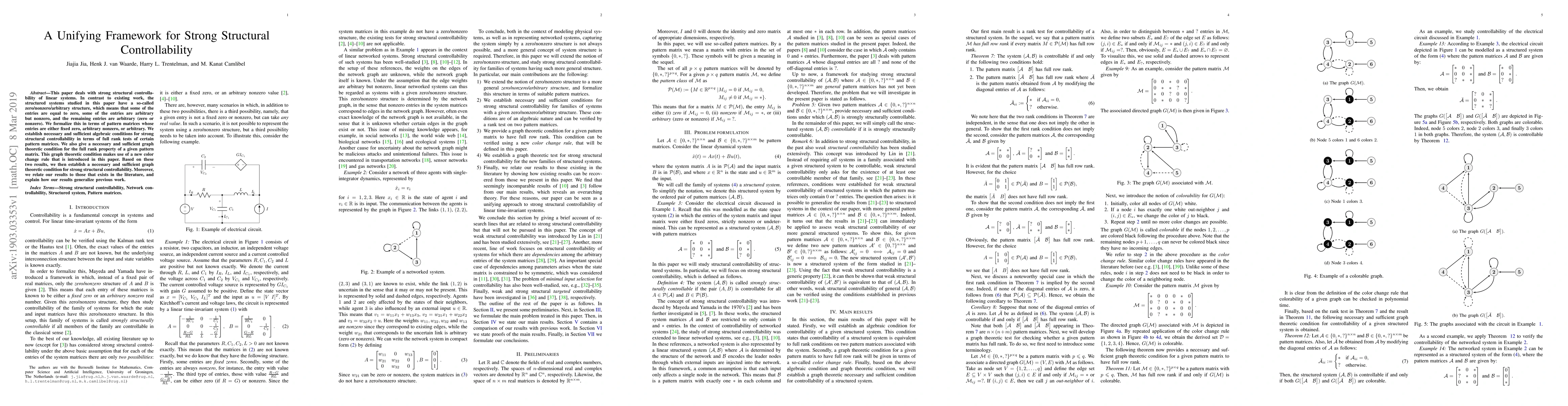 This paper establishes conditions for strong structural controllability in linear systems with arbitrary structures, providing both algebraic and graph theoretic tests.
