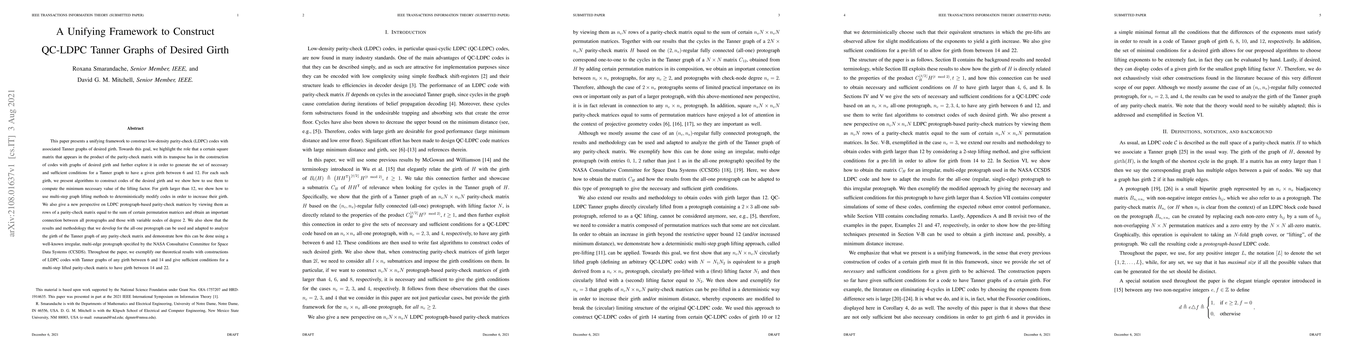 This paper develops a framework for constructing QC-LDPC codes with Tanner graphs of specified girth, utilizing a square matrix in the parity-check matrix product to generate necessary conditions for girths 6 to 12, and presenting algorithms for girth modification beyond 12. It also explores connections between protographs and their degree-2 variants.