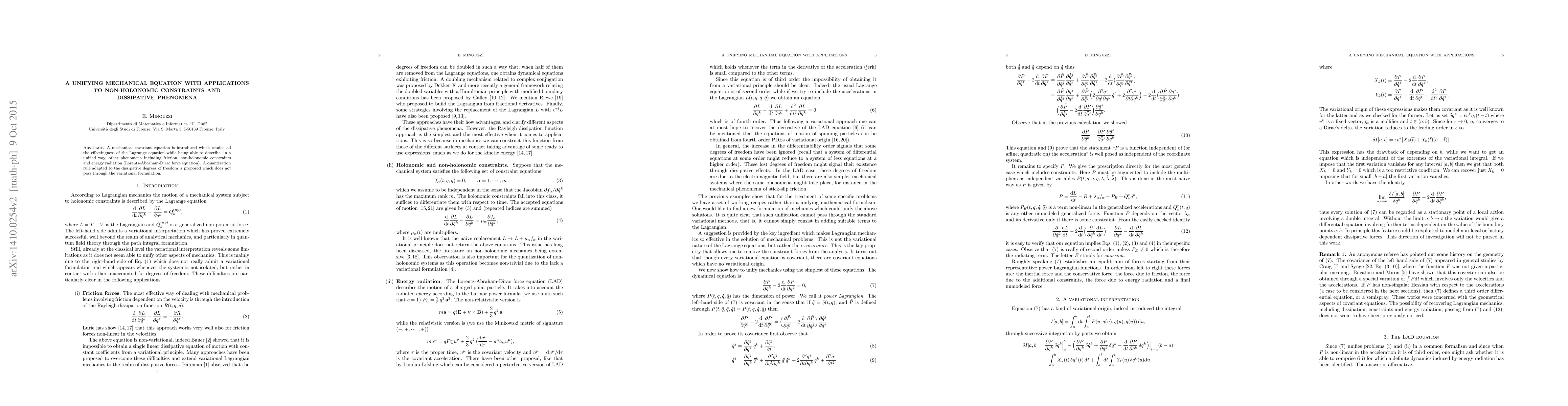 A new mechanical equation unifies descriptions of friction, non-holonomic constraints, and energy radiation, offering a single framework for understanding dissipative phenomena.