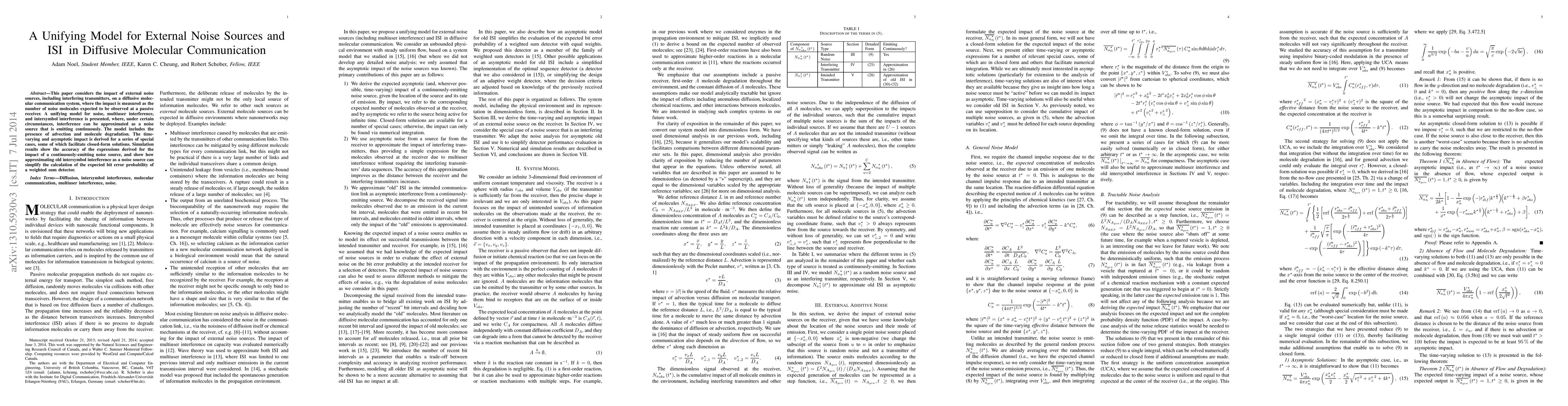 This paper considers the impact of external noise sources, including interfering transmitters, on a diffusive molecular communication system, where the impact is measured as the number of noise molecules expected to be observed at a passive receiver. A unifying model for noise, multiuser interference, and intersymbol interference is presented, where, under certain circumstances, interference can be approximated as a noise source that is emitting continuously. The model includes the presence of advection and molecule degradation. The time-varying and asymptotic impact is derived for a series of special cases, some of which facilitate closed-form solutions. Simulation results show the accuracy of the expressions derived for the impact of a continuously-emitting noise source, and show how approximating intersymbol interference as a noise source can simplify the calculation of the expected bit error probability of a weighted sum detector.