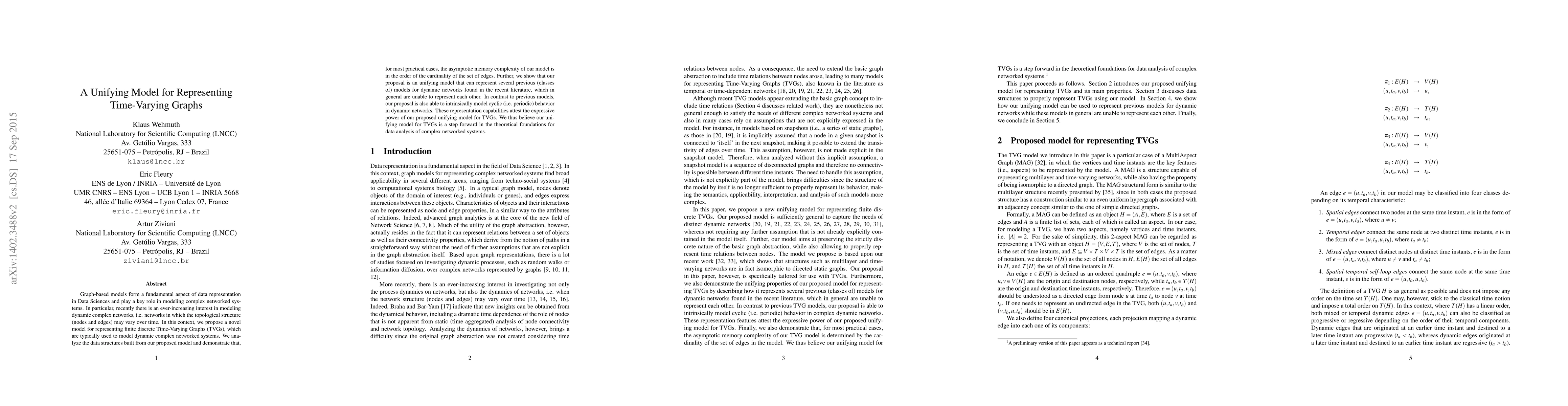 Researchers propose a new model to represent dynamic complex networks with time-varying graphs, showing it can efficiently store data and unify previous models.