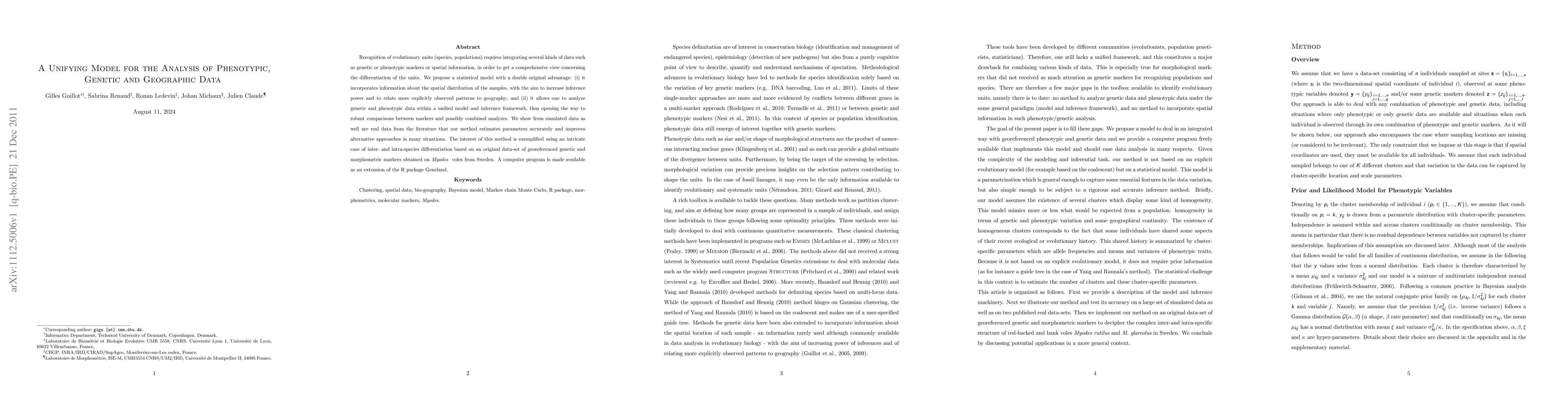 This paper proposes a statistical model to integrate phenotypic, genetic, and geographic data for analyzing evolutionary units. The model enhances inference power by incorporating spatial distribution and allows unified analysis of genetic and phenotypic data, demonstrating improved accuracy and robustness over alternative methods.