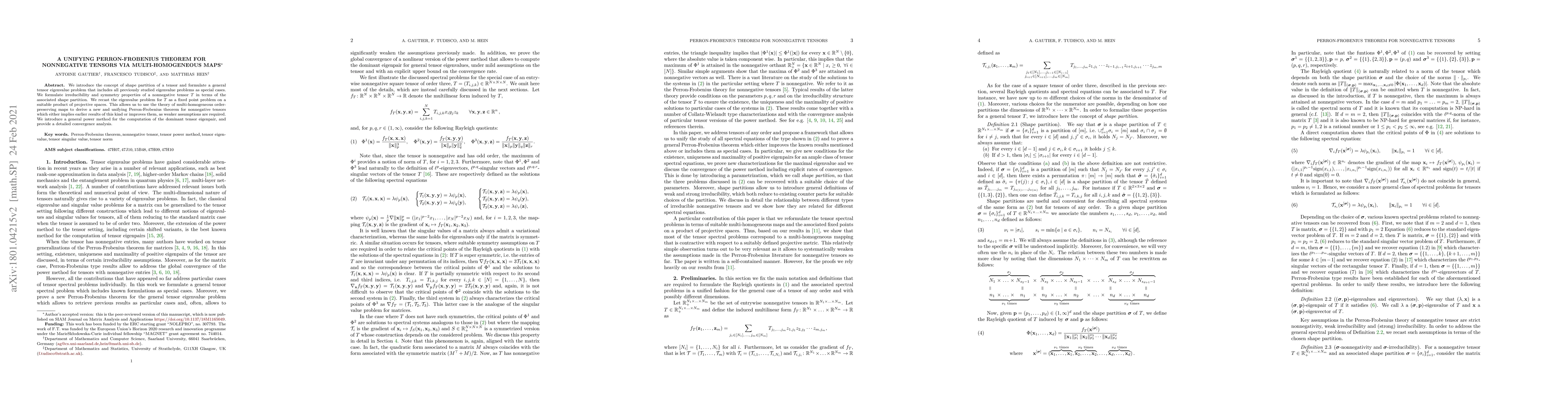 This paper introduces a unifying Perron-Frobenius theorem for nonnegative tensors by defining shape partitions and formulating a general tensor eigenvalue problem. It leverages multi-homogeneous order-preserving maps to derive improved results with weaker assumptions and presents a new power method for computing dominant tensor eigenpairs with detailed convergence analysis.