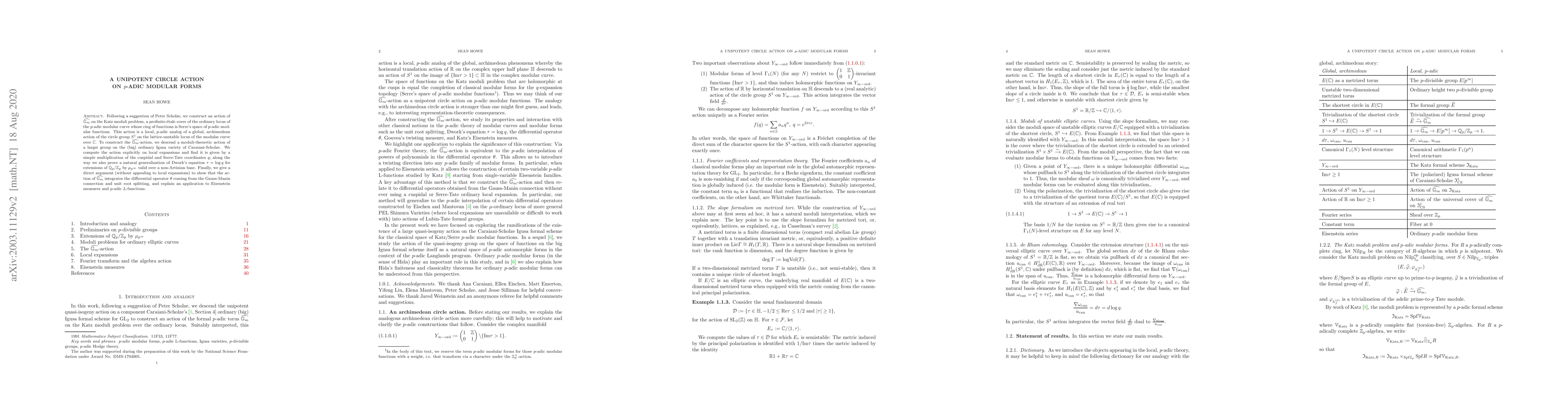 Following a suggestion of Peter Scholze, we construct an action of $\hat{\mathbb{G}}_m$ on the Katz moduli problem, a profinite-\'{e}tale cover of the ordinary locus of the $p$-adic modular curve whose ring of functions is Serre's space of $p$-adic modular functions. This action is a local, $p$-adic analog of a global, archimedean action of the circle group $S^1$ on the lattice-unstable locus of the modular curve over $\mathbb{C}$. To construct the $\hat{\mathbb{G}}_m$-action, we descend a moduli-theoretic action of a larger group on the (big) ordinary Igusa variety of Caraiani-Scholze. We compute the action explicitly on local expansions and find it is given by a simple multiplication of the cuspidal and Serre-Tate coordinates $q$; along the way we also prove a natural generalization of Dwork's equation $\tau=\log q$ for extensions of $\mathbb{Q}_p/\mathbb{Z}_p$ by $\mu_{p^\infty}$ valid over a non-Artinian base. Finally, we give a direct argument (without appealing to local expansions) to show that the action of $\hat{\mathbb{G}}_m$ integrates the differential operator $\theta$ coming from the Gauss-Manin connection and unit root splitting, and explain an application to Eisenstein measures and $p$-adic $L$-functions.