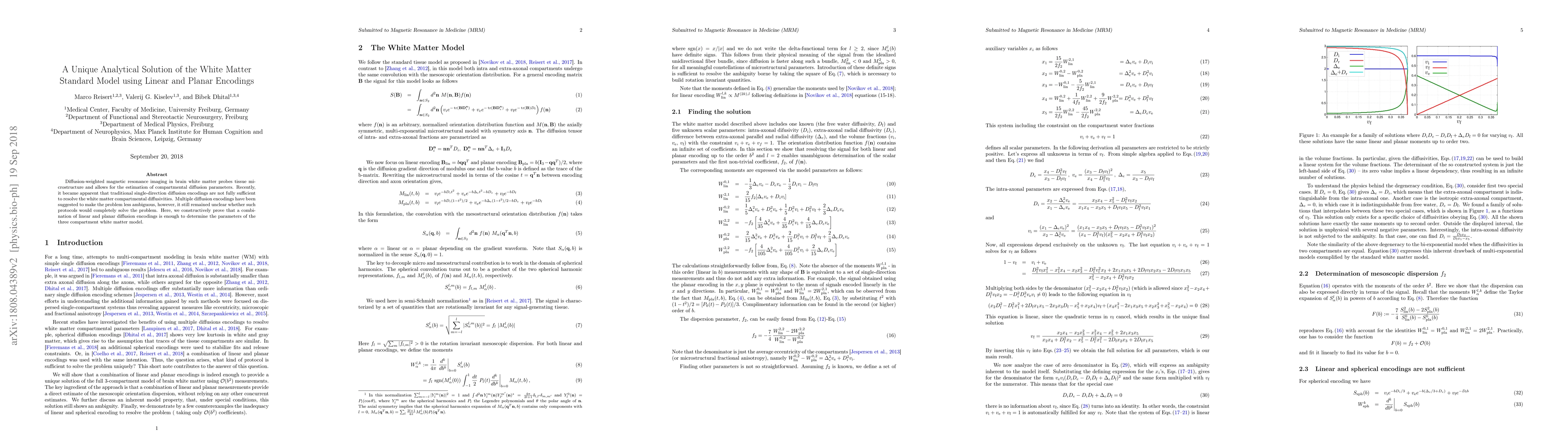 Diffusion-weighted magnetic resonance imaging in brain white matter probes tissue microstructure and allows for the estimation of compartmental diffusion parameters. Recently, it became apparent that traditional single-direction diffusion encodings are not fully sufficient to resolve the white matter compartmental diffusivities. Multiple diffusion encodings have been suggested to make the problem less ambiguous, however, it still remained unclear whether such protocols would completely solve the problem. Here, we constructively prove that a combination of linear and planar diffusion encodings is enough to determine the parameters of the three compartment white matter model.