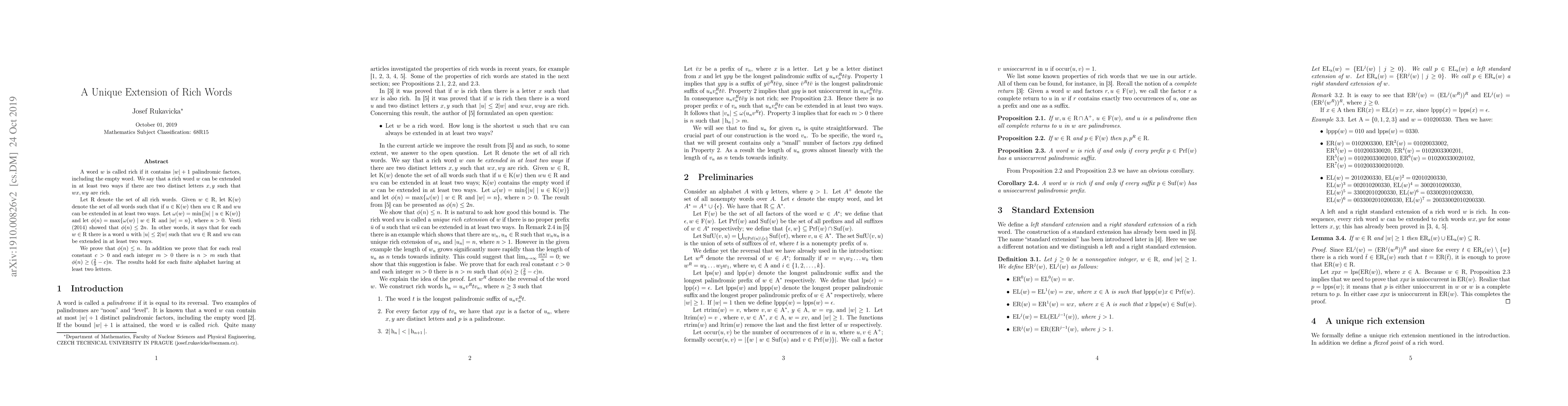 A word $w$ is called rich if it contains $| w|+1$ palindromic factors, including the empty word. We say that a rich word $w$ can be extended in at least two ways if there are two distinct letters $x,y$ such that $wx,wy$ are rich. Let $R$ denote the set of all rich words. Given $w\in R$, let $K(w)$ denote the set of all words such that if $u\in K(w)$ then $wu\in R$ and $wu$ can be extended in at least two ways. Let $\omega(w)=\min\{| u| \mid u\in K(w)\}$ and let $\phi(n)=\max\{\omega(w)\mid w\in R\mbox{ and }| w|=n\}$, where $n>0$. Vesti (2014) showed that $\phi(n)\leq 2n$. In other words, it says that for each $w\in R$ there is a word $u$ with $| u|\leq 2| w|$ such that $wu\in R$ and $wu$ can be extended in at least two ways. We prove that $\phi(n)\leq n$. In addition we prove that for each real constant $c>0$ and each integer $m>0$ there is $n>m$ such that $\phi(n)\geq (\frac{2}{9}-c)n$. The results hold for each finite alphabet having at least two letters.