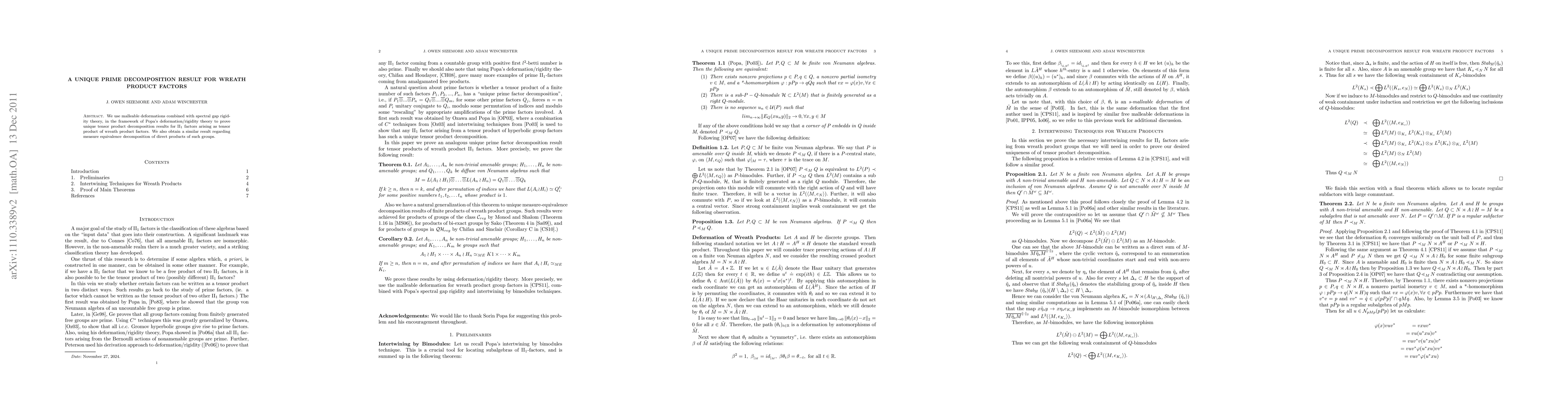 This paper proves unique tensor product decomposition for II$_1$ factors derived from wreath product factors using malleable deformations and spectral gap rigidity, extending results to measure equivalence decompositions of direct products of these groups.