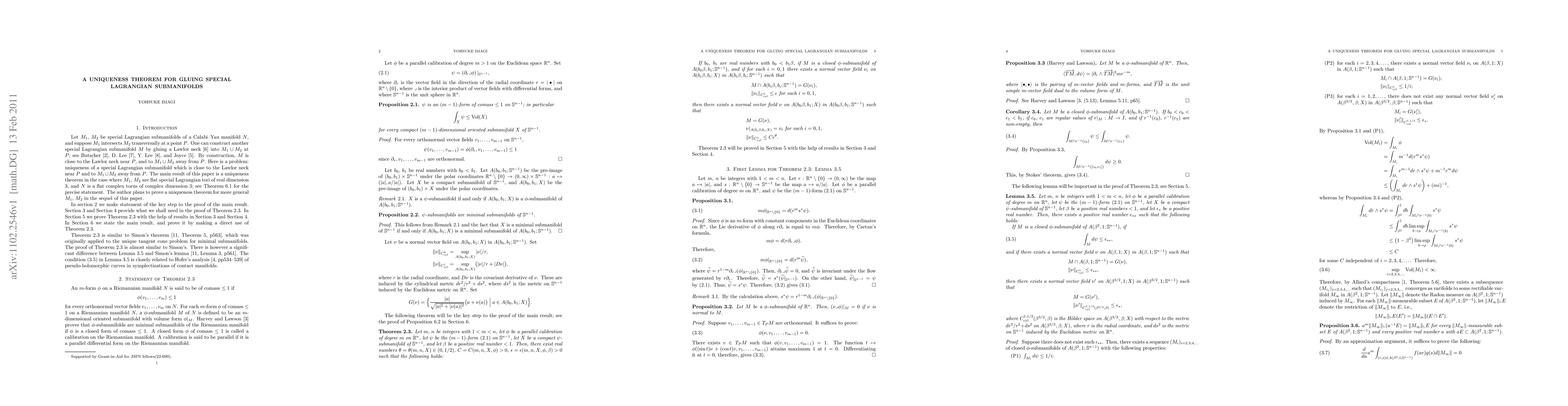 This paper proves a uniqueness theorem for gluing flat special Lagrangian tori of real dimension 3 in a flat complex torus of complex dimension 3, extending the construction by Butscher, D. Lee, Y. Lee, and Joyce involving Lawlor necks in special Lagrangian submanifolds.