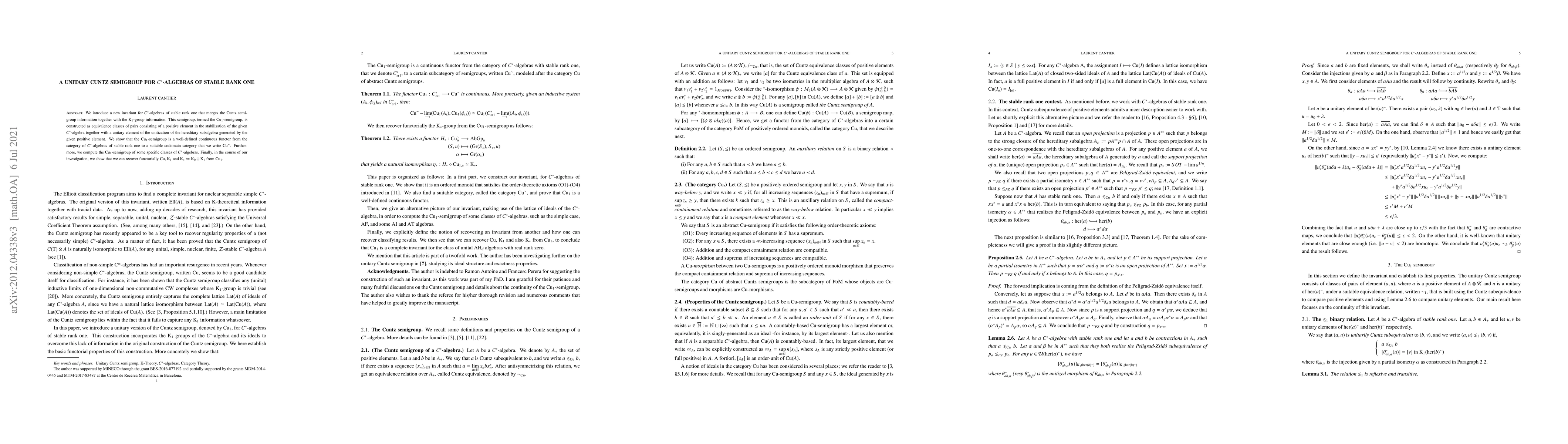 We introduce a new invariant for C*-algebras of stable rank one that merges the Cuntz semigroup information together with the K$_1$-group information. This semigroup, termed the Cu$_1$-semigroup, is constructed as equivalence classes of pairs consisting of a positive element in the stabilization of the given C*-algebra together with a unitary element of the unitization of the hereditary subalgebra generated by the given positive element. We show that the Cu$_1$-semigroup is a well-defined continuous functor from the category of C*-algebras of stable rank one to a suitable codomain category that we write Cu$^\sim$. Furthermore, we compute the Cu$_1$-semigroup of some specific classes of C*-algebras. Finally, in the course of our investigation, we show that we can recover functorially Cu, K$_1$ and K$_*:=$K$_0$$\oplus$ K$_1$ from Cu$_1$.