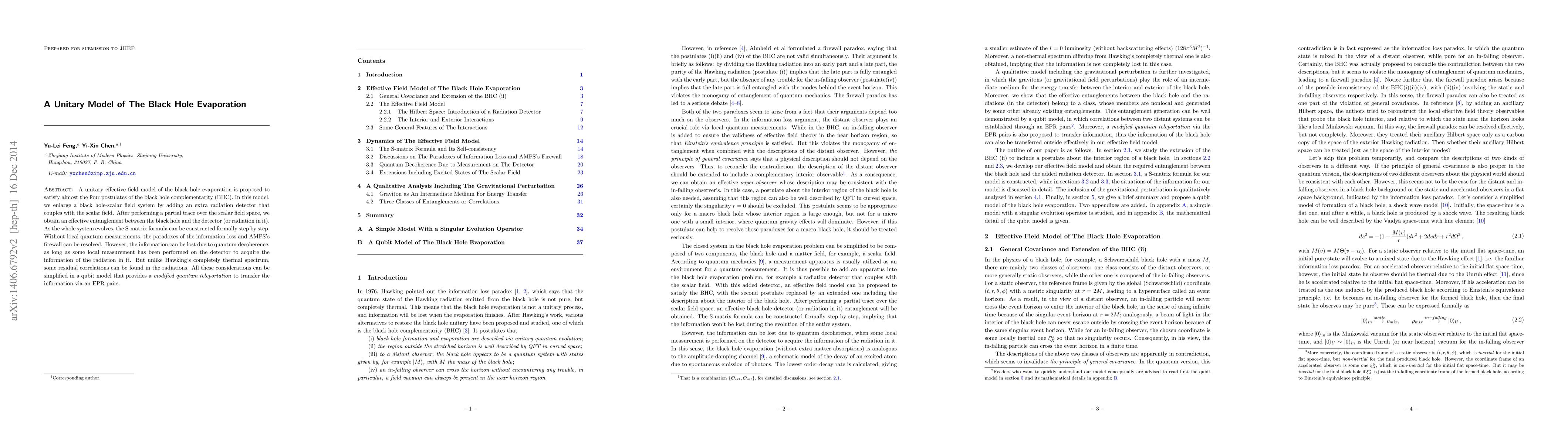 A unitary effective field model of the black hole evaporation is proposed to satisfy almost the four postulates of the black hole complementarity (BHC). In this model, we enlarge a black hole-scalar field system by adding an extra radiation detector that couples with the scalar field. After performing a partial trace over the scalar field space, we obtain an effective entanglement between the black hole and the detector (or radiation in it). As the whole system evolves, the S-matrix formula can be constructed formally step by step. Without local quantum measurements, the paradoxes of the information loss and AMPS's firewall can be resolved. However, the information can be lost due to quantum decoherence, as long as some local measurement has been performed on the detector to acquire the information of the radiation in it. But unlike Hawking's completely thermal spectrum, some residual correlations can be found in the radiations. All these considerations can be simplified in a qubit model that provides a \emph{modified quantum teleportation} to transfer the information via an EPR pairs.