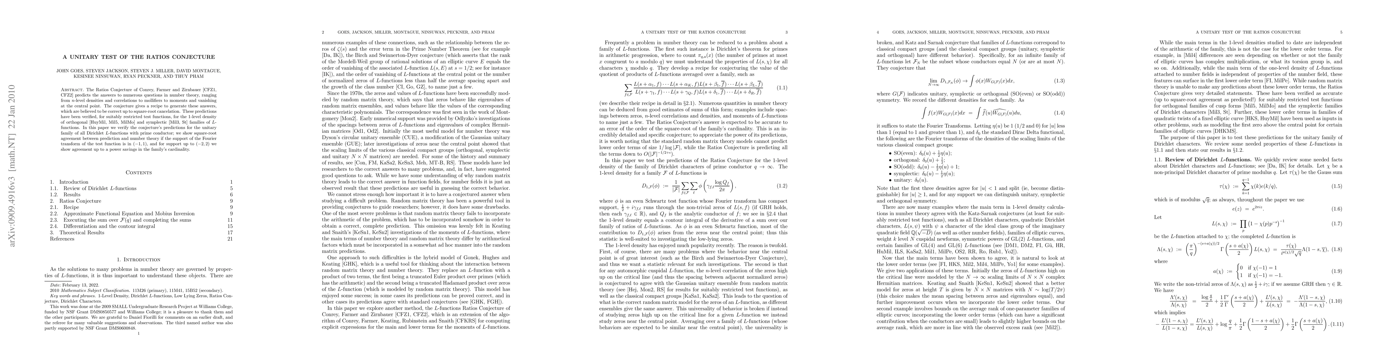 The Ratios Conjecture of Conrey, Farmer and Zirnbauer predicts the answers to numerous questions in number theory, ranging from n-level densities and correlations to mollifiers to moments and vanishing at the central point. The conjecture gives a recipe to generate these answers, which are believed to be correct up to square-root cancelation. These predictions have been verified, for suitably restricted test functions, for the 1-level density of orthogonal and symplectic families of L-functions. In this paper we verify the conjecture's predictions for the unitary family of all Dirichlet $L$-functions with prime conductor; we show square-root agreement between prediction and number theory if the support of the Fourier transform of the test function is in (-1,1), and for support up to (-2,2) we show agreement up to a power savings in the family's cardinality.